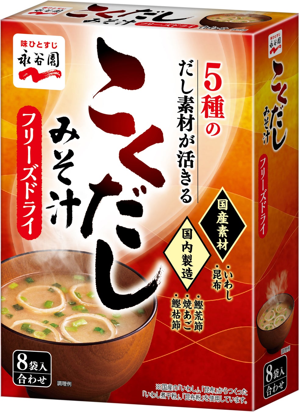 フリーズドライ製法だからこそ感じられる「だし」のおいしさを是非。「フリーズドライ こくだしみそ汁8袋入」新発売