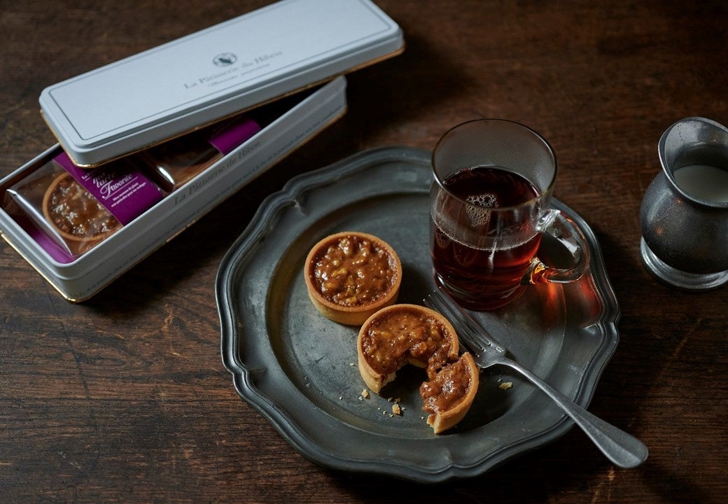 「マ・タルト・ファヴォリット」は、いちじくとクルミをたっぷり練り込んだキャラメルフィリングを、サクサク食感のタルトにのせて焼き上げた手のひらサイズのスイーツ。コリっとしたクルミや、プチプチとしたいちじくの食感も楽しい一品です。味わいのアクセントにはラム酒を使用し、大人のご褒美スイーツに仕上げました。一日の終わりに、心ほどけるやさしい甘さで癒されてください。