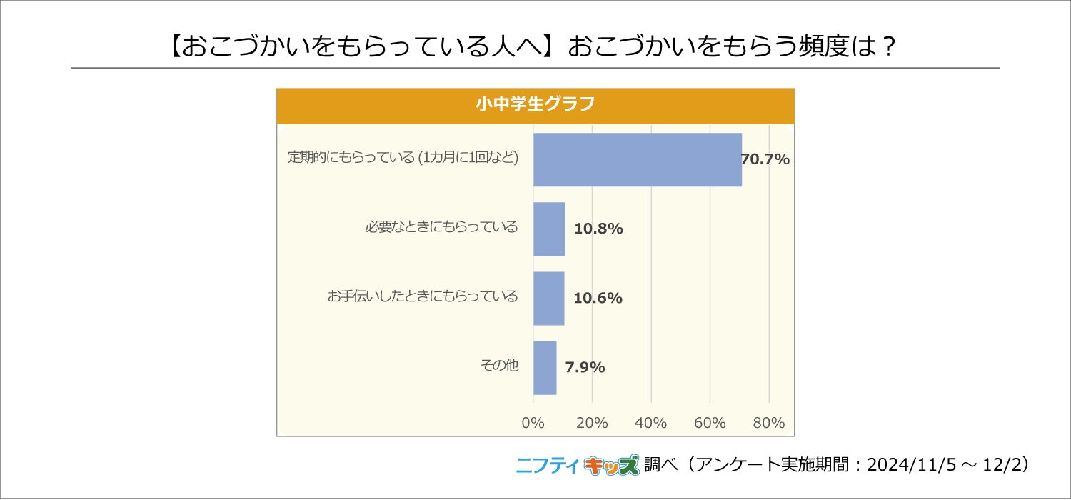 1カ月に1回など定期的にもらっている人が最も多く、必要な時にもらっている人や、お手伝いをした時にもらう人もそれぞれ1割程度いるようです。