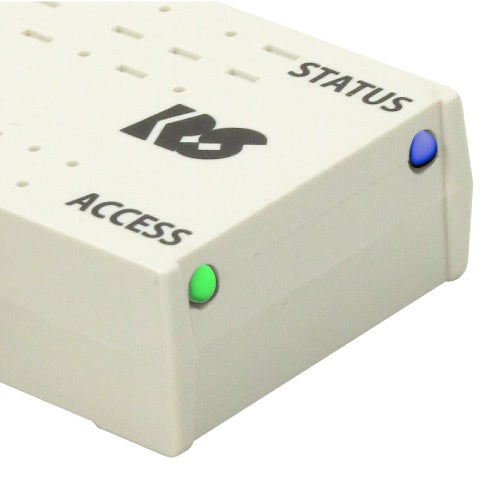 従来品のLEDは本体天面にあり、ポートの向きによっては見えませんでした。本製品ではコネクタの反対側にLEDを配置することで、どの向きに挿してもデータ送受信を確認できるようになりました。