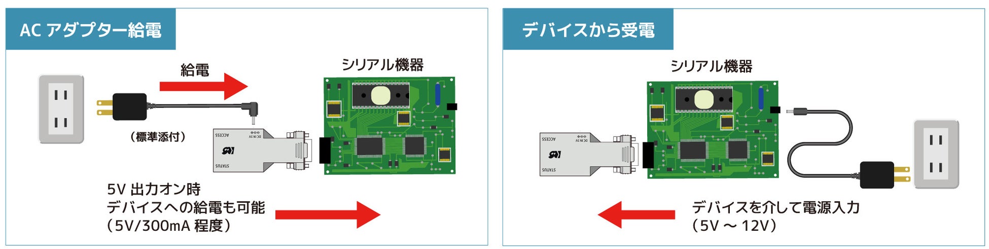 ACアダプター使用時、D-SUB9番ピンを介して外部デバイスへ供給可能(5V300mA程度)