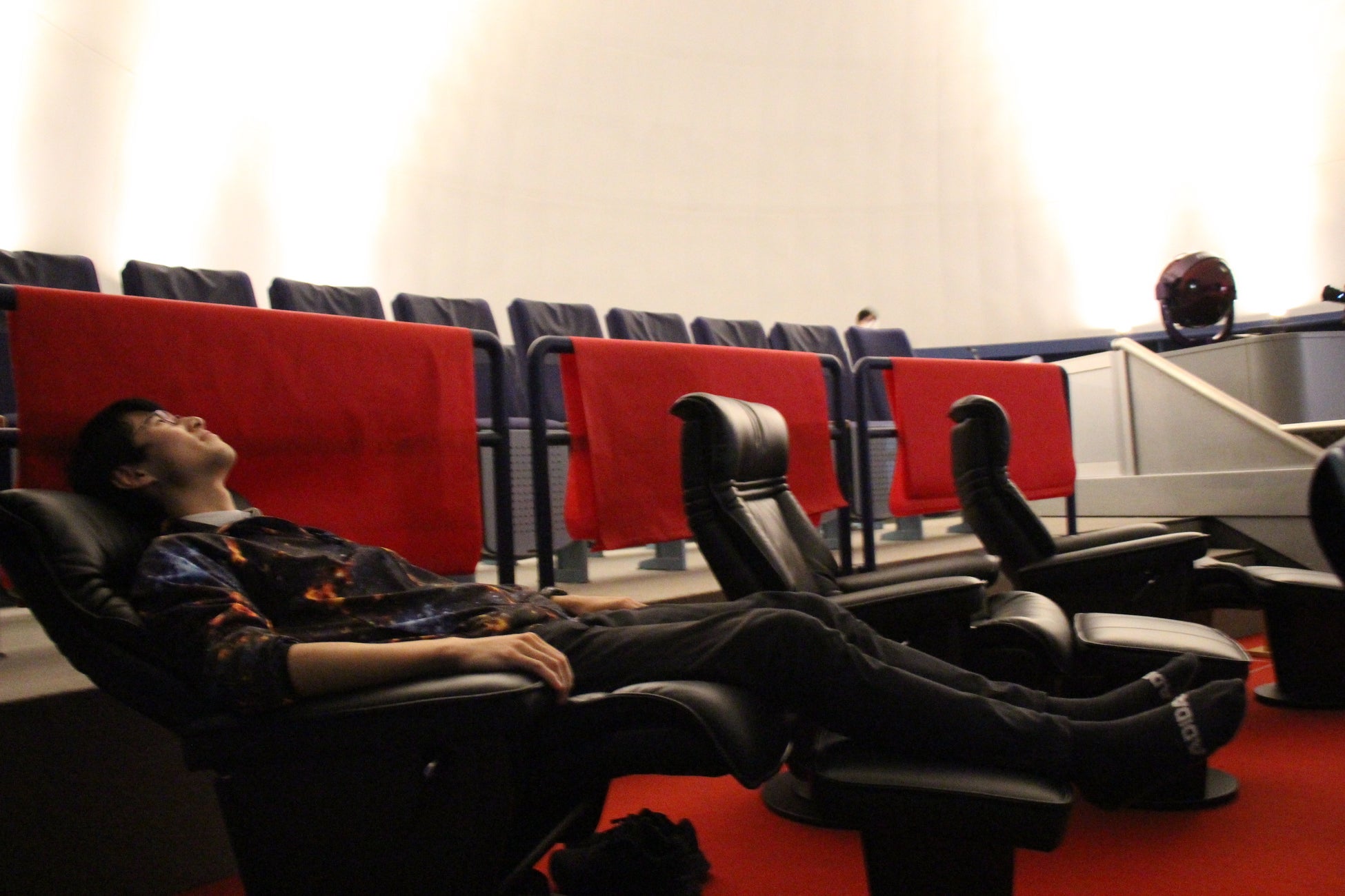 座席の一部を改修して設置した特別席は、リクライニングの「プレミアムシート」が3席(1席1人)。親子4人程度が一緒に利用できる広さの「お座敷シート」が1席です。畳に寝転がって投影された星空を眺められるのは、おそらく世界でも例がありません。