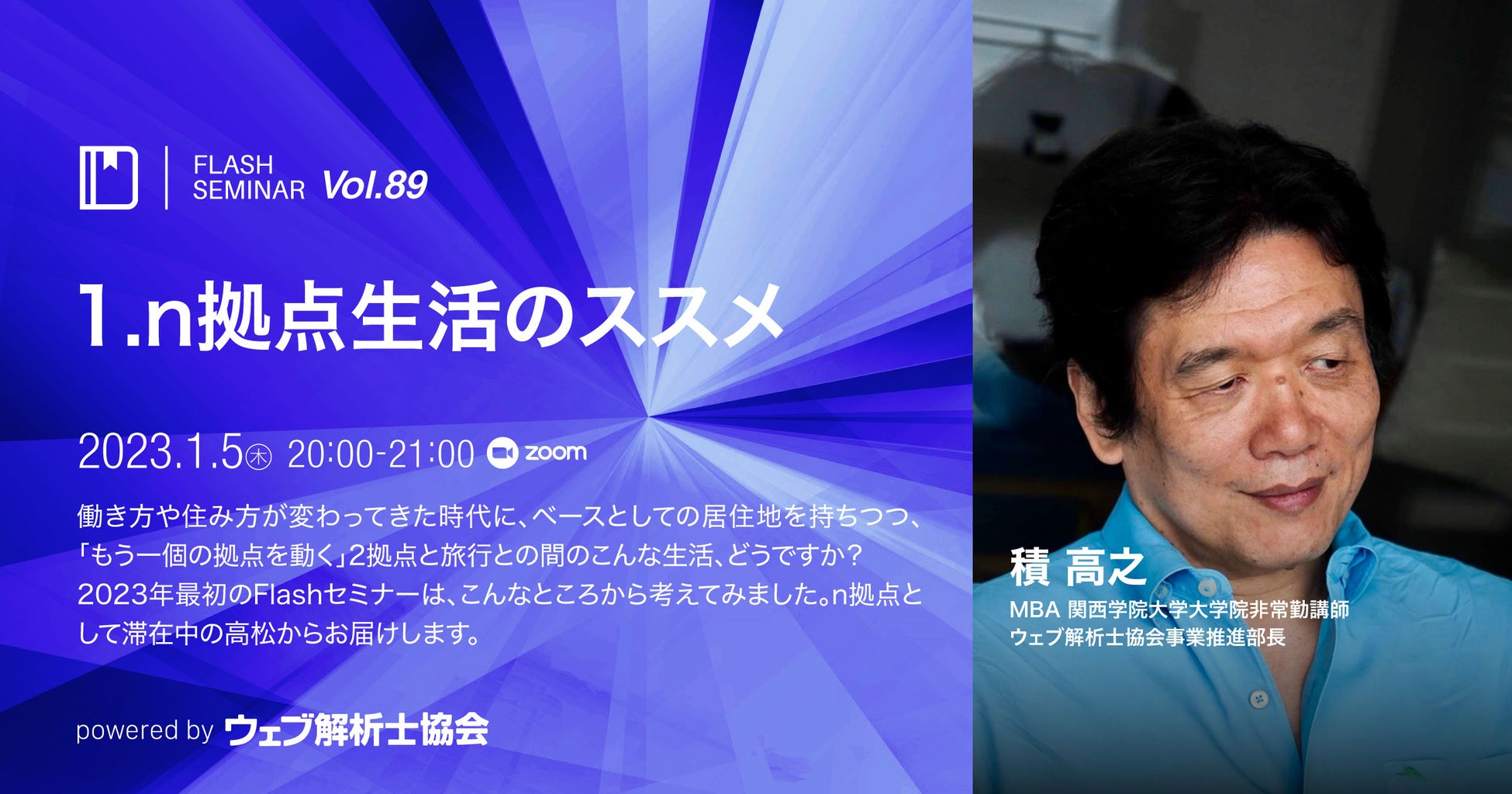 2023/1/5(木)20:00 - 21:00【Flashセミナー】Vol.89【無料】1.n拠点生活のススメ