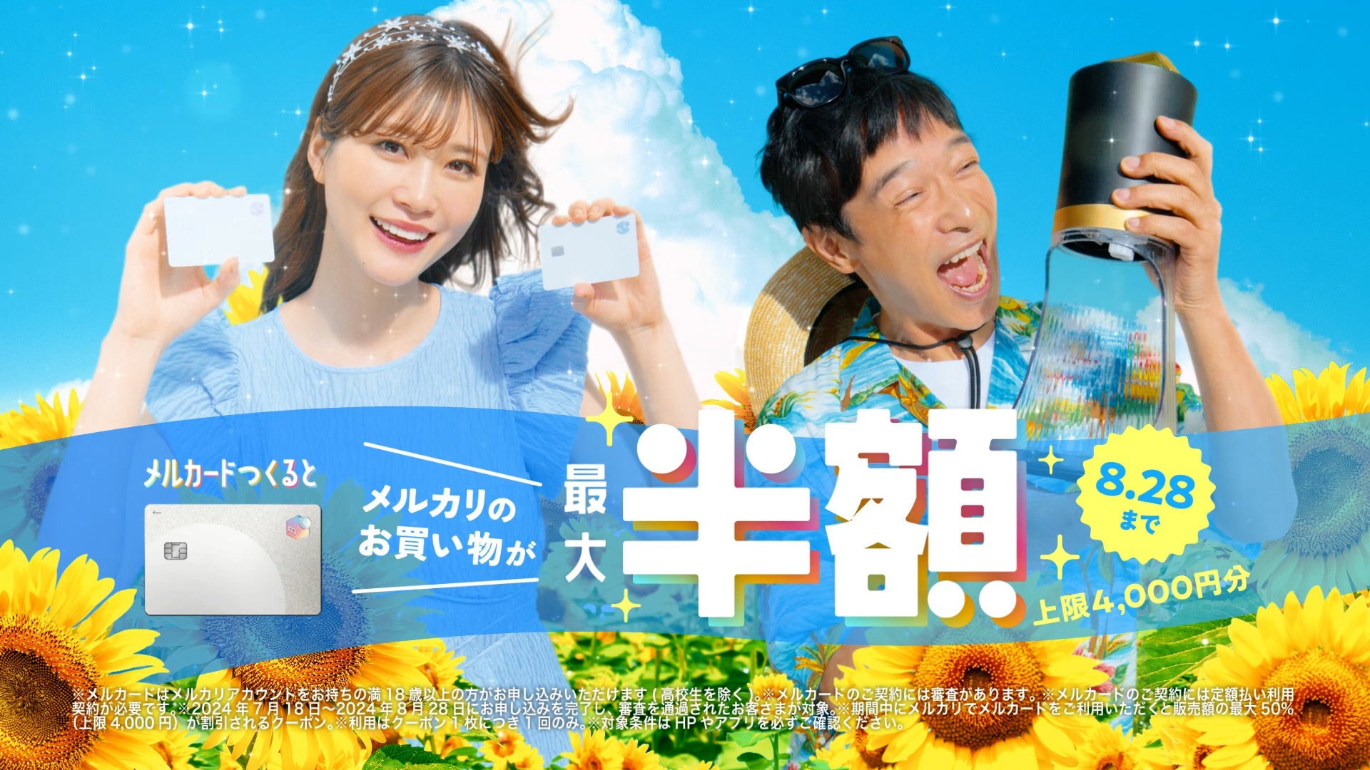 株式会社メルペイ(以下、メルペイ)は、2024年7月18日より、「メルカード(※2)」の新規入会や利用で最大13,000円分の特典がもらえるキャンペーン「爆トク祭」を開催いたします。また、キャンペーン開始に伴い、2024年7月19日より堺雅人さんと生見愛瑠さんが出演の新CM『メルカード「夏の精」篇』を放映いたします。