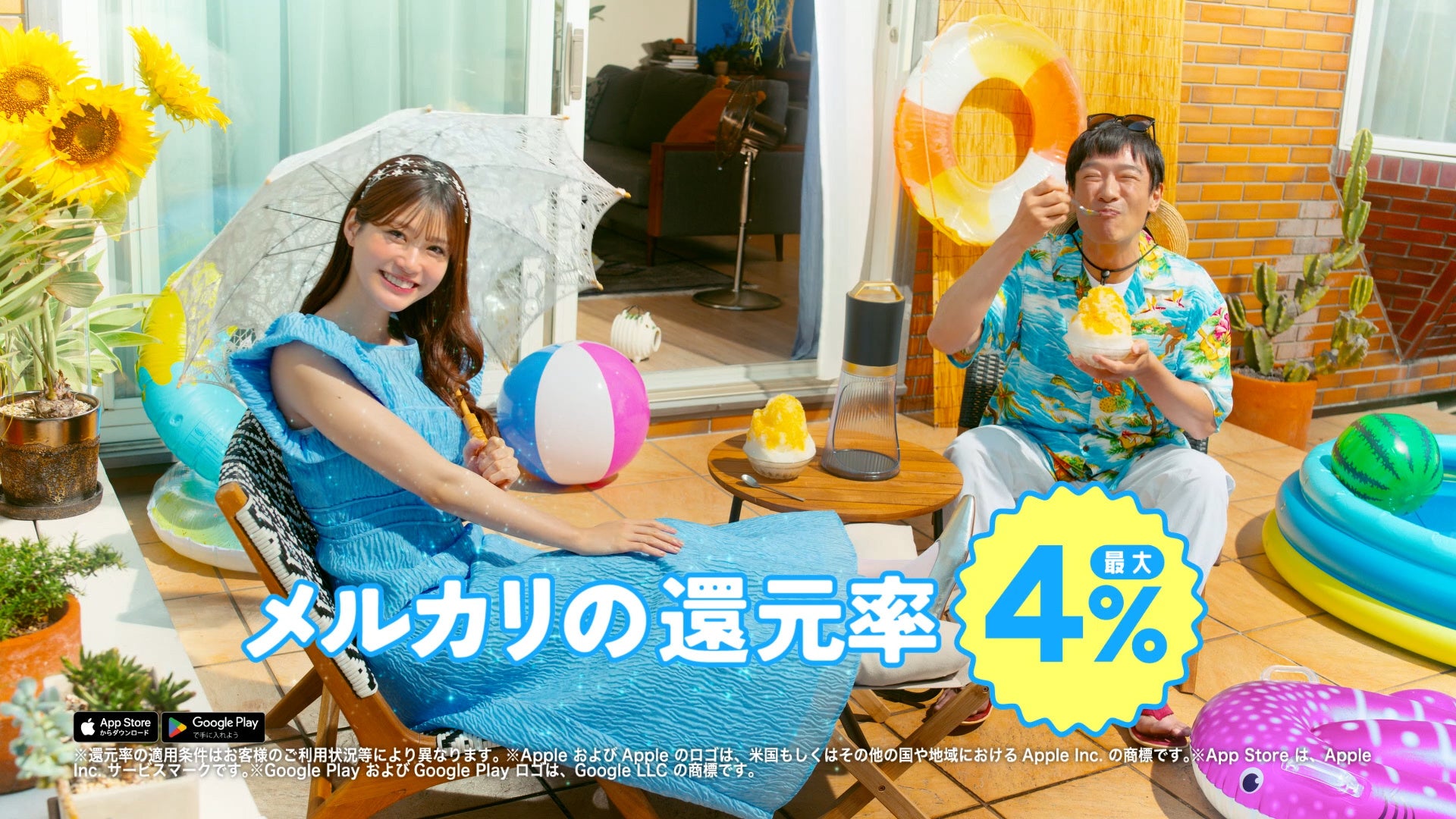 キャンペーン実施に伴い、2024年7月19日より堺雅人さんと生見愛瑠さん出演の新CM『メルカード「夏の精」篇』を公開いたします。今回の新CMでは、生見愛瑠さん演じる「夏の精」が堺雅人さんの部屋に登場し、夏定番のかき氷機を「メルカード」に入会することでお得に買えるというやりとりが展開されます。