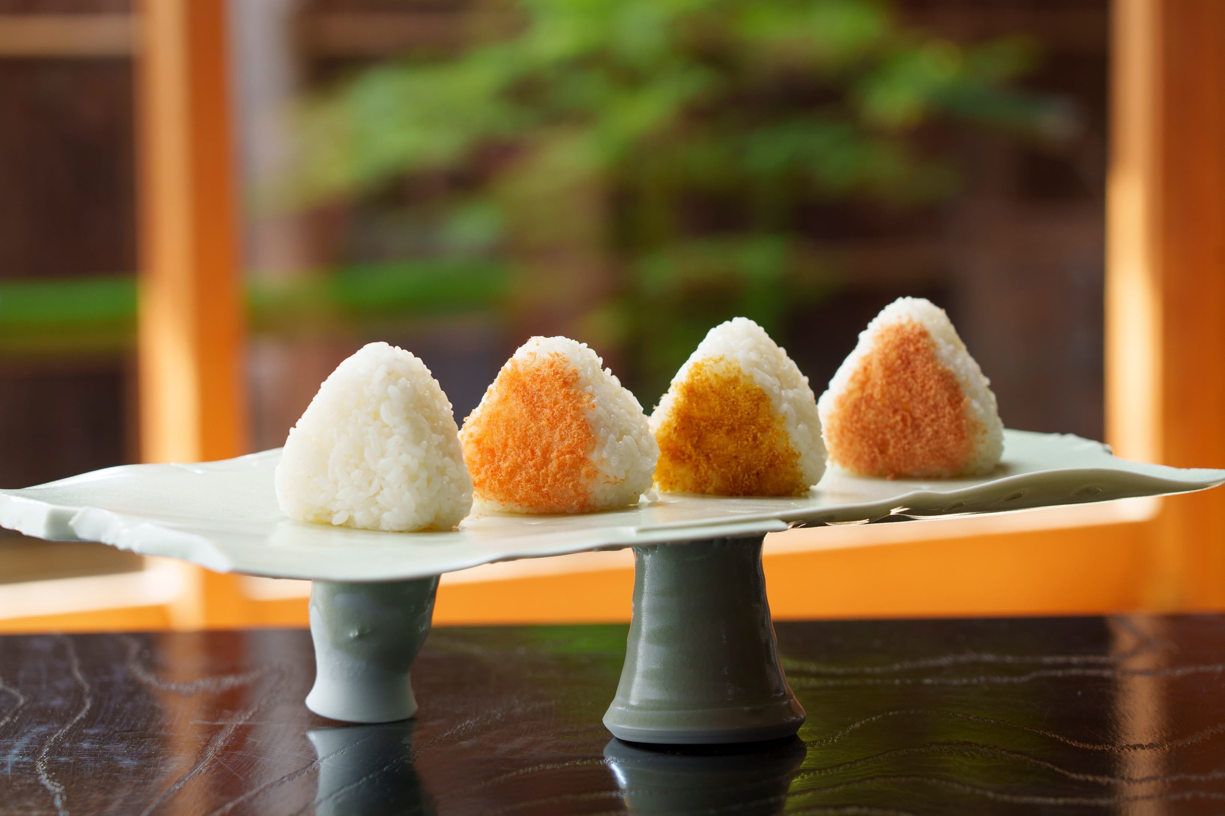 また、3種のおむすびの具材は「至福の塩むすび」に加えて、京都を代表する老舗料亭・祇園丸山監修の3種(鮭、からすみ、明太子)のおむすびの中から1種類※をお選びいただけます。