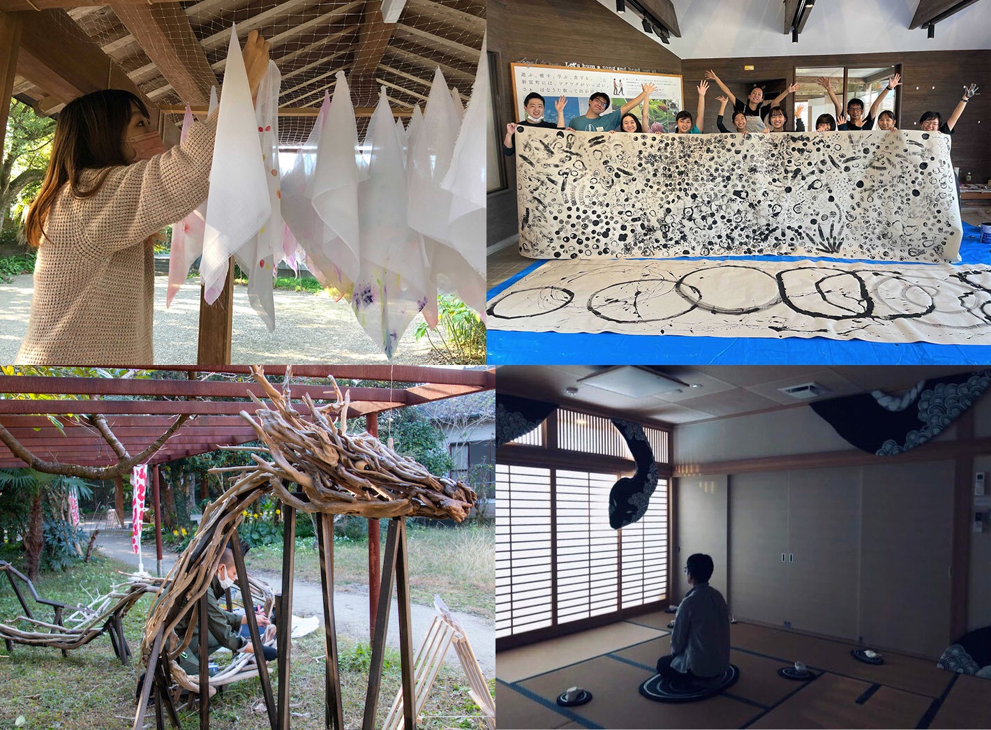 それぞれのアーティストがワークショップで町民と作った作品をもとに、日向新富駅や水沼神社、新富町文化交流センターきらり等町民の目に触れやすい場所を会場に会期中作品を展示しました。