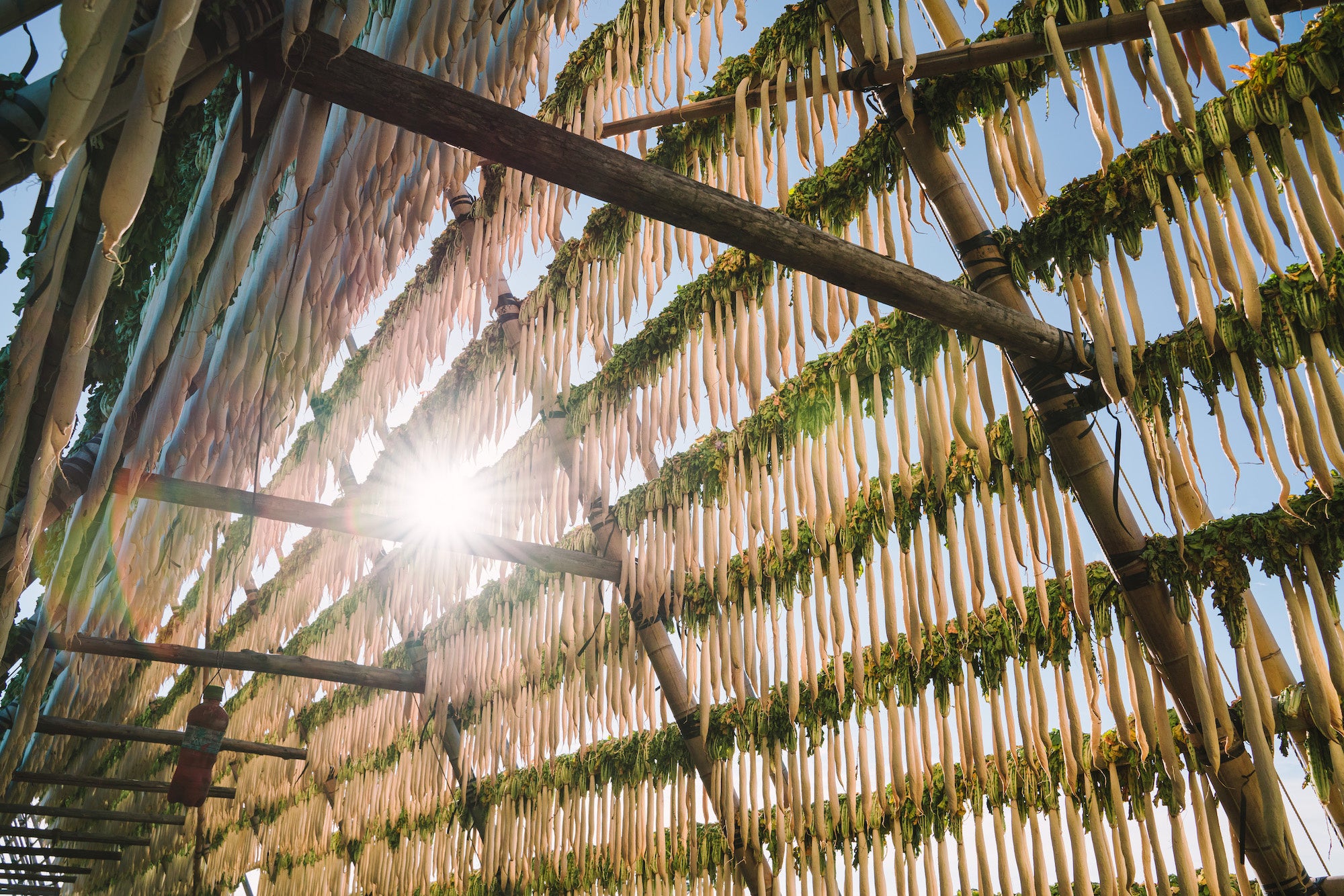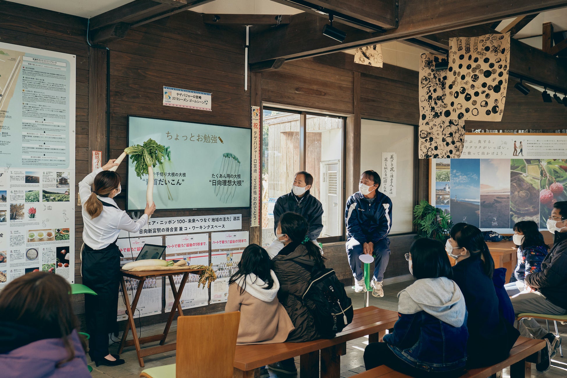 新富町の冬の風物詩である「大根やぐら」のミニバージョンを駅前に再現。後日、漬物会社の社長と農家さんをゲストに漬物大根について知るイベントも開催しました。