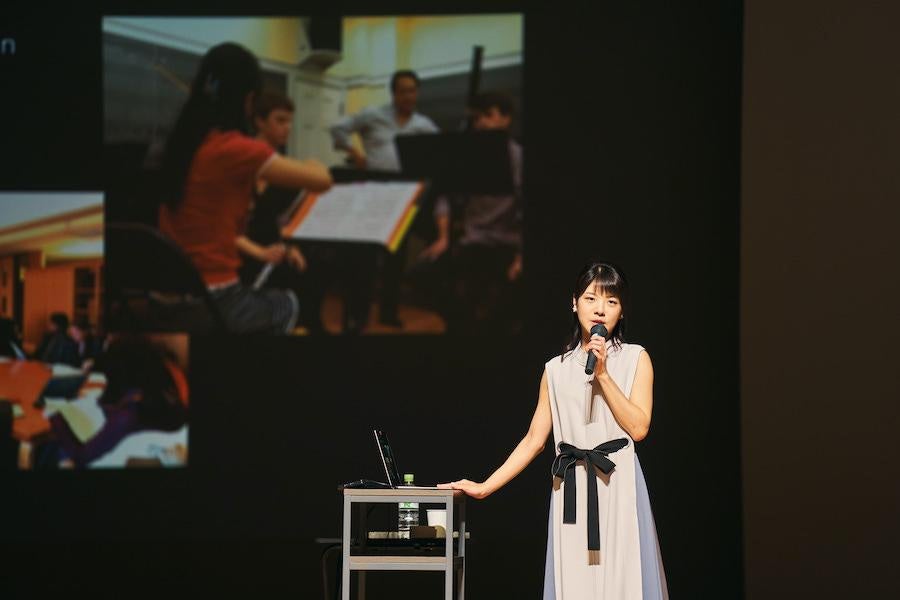 第1部は大分出身のバイオリニスト・廣津留すみれさんによるトークショー。第2部はピアニスト・河野紘子さんとのデュオコンサートを行いました。