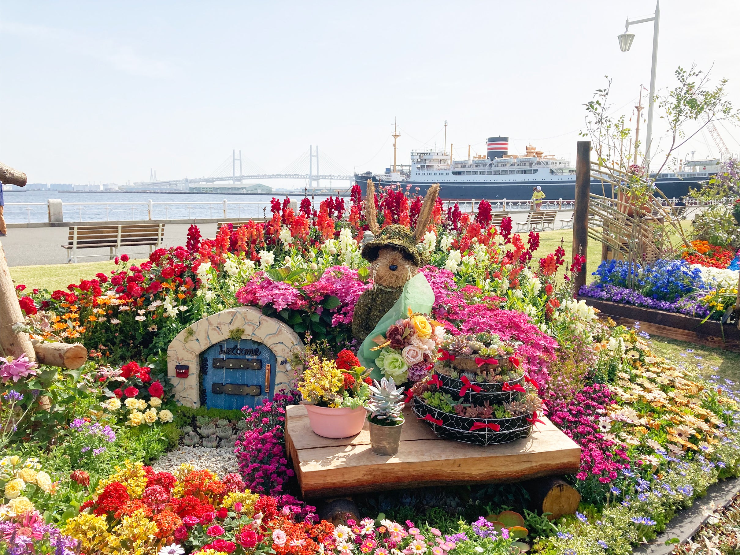 美しい港や、みなとみらい地区の風景が見渡せる山下公園では、今年で60回目を迎える、横浜の造園事業者等が趣向を凝らした21区画の花壇が並ぶ「花壇展」がお楽しみいただけます。