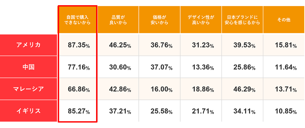 ■越境ECの購入理由は、「自国で購入できないから」が最多で約8割