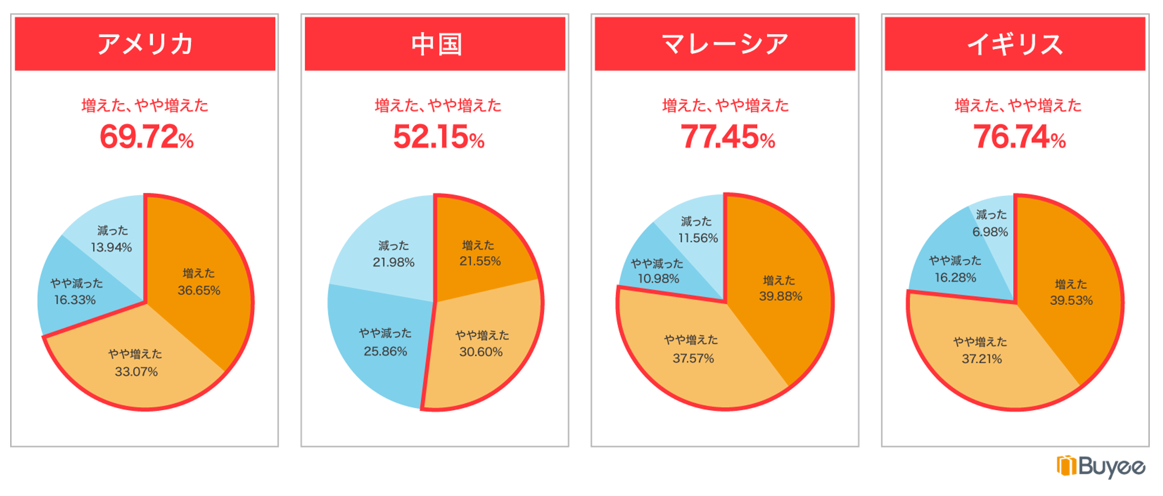 コロナ禍でコロナ禍で注目される越境ECですが、海外のお客様はなぜ越境ECを利用されているのでしょうか?また、アフターコロナ以降の利用意向はどう変化するのでしょうか?越境ECに関するアンケートを「Buyee」を利用する海外のお客様約800名(アメリカ、中国、マレーシア、イギリス)に実施しました。今回のアンケート結果を発表することにより、BeeCruiseは日本企業が「海外に挑戦」するための一助となることを目指します。