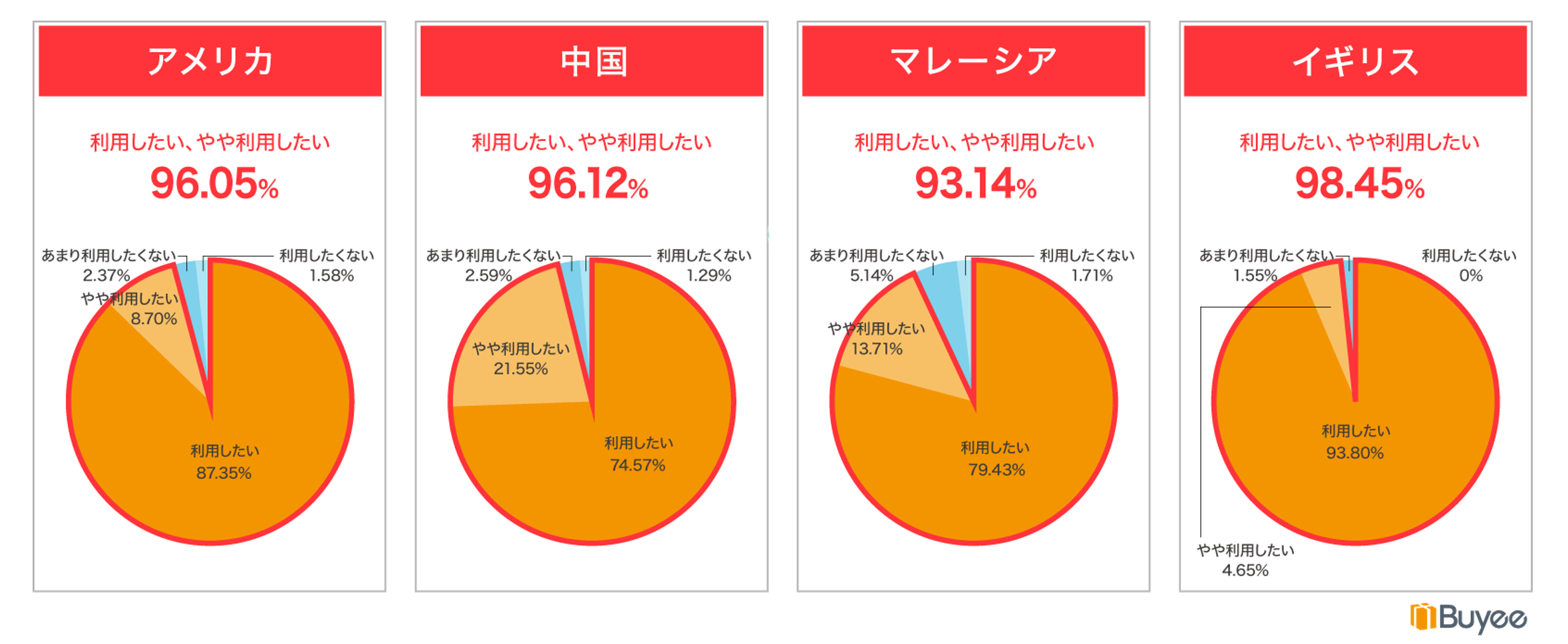 BEENOS株式会社(東証一部:3328)の連結子会社で、越境ECおよびジャパニーズコンテンツの海外進出をサポートするBeeCruise株式会社(以下「BeeCruise」)は、同じく連結子会社であるtenso株式会社(以下、tenso)が運営する越境EC 流通総額No.1(※1)の海外向け購入サポートサービス「Buyee(バイイー)」を利用されている海外のお客様約800名に「越境ECの利用意向」に関するアンケートを実施しました。