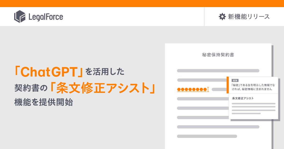 AI契約審査プラットフォーム「LegalForce」、「ChatGPT」を活用した「条文修正アシスト」機能をオープンβ版として5月中を目処に提供開始