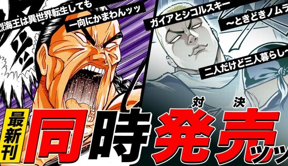 株式会社秋田書店(所在地:東京都千代田区、代表取締役社長:樋口茂)は、格闘バトル漫画の金字塔「刃牙」シリーズの外伝スピンオフ作品2タイトル「バキ外伝 烈海王は異世界転生しても一向にかまわんッッ」7巻・「バキ外伝 ガイアとシコルスキー〜ときどきノムラ 二人だけど三人暮らし〜」1巻を同時発売する。