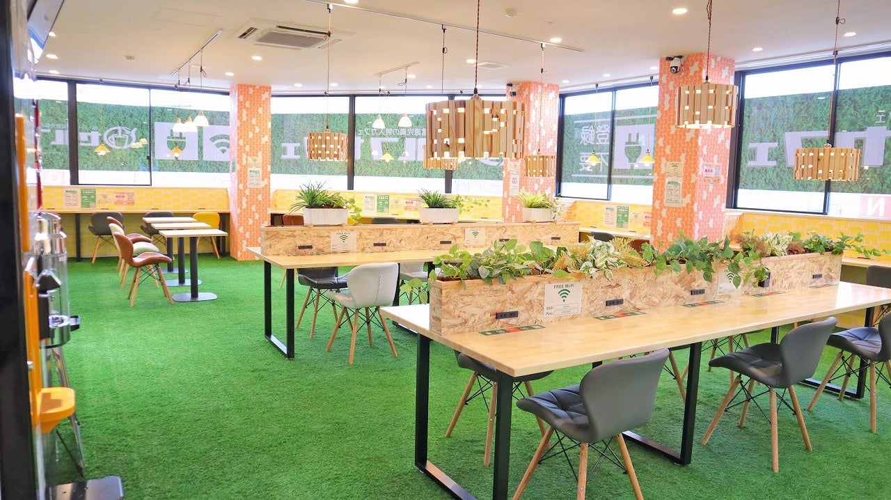 スタッフの目を気にせず仕事、勉強に集中できるような”無人”のカフェ。