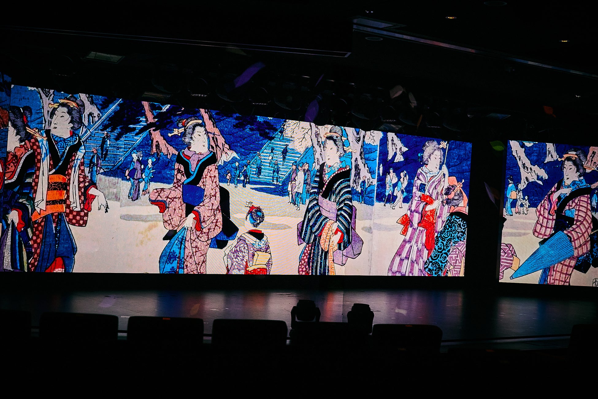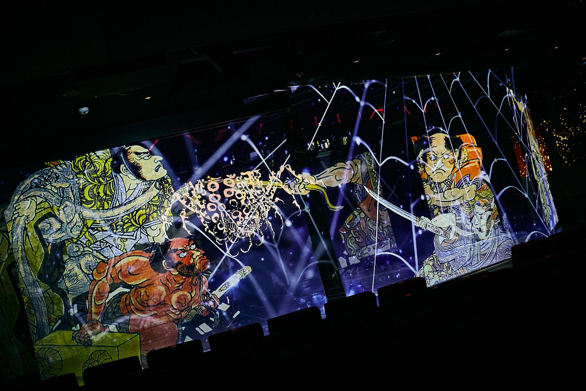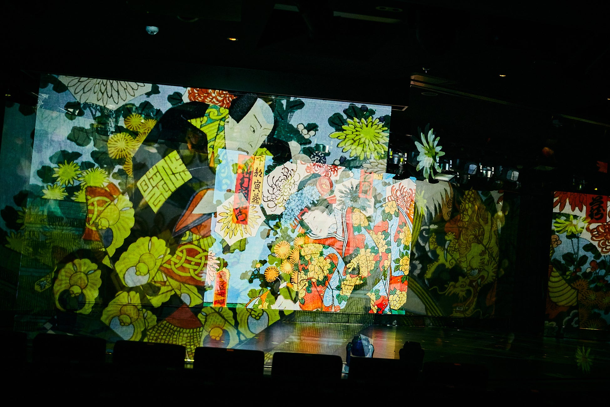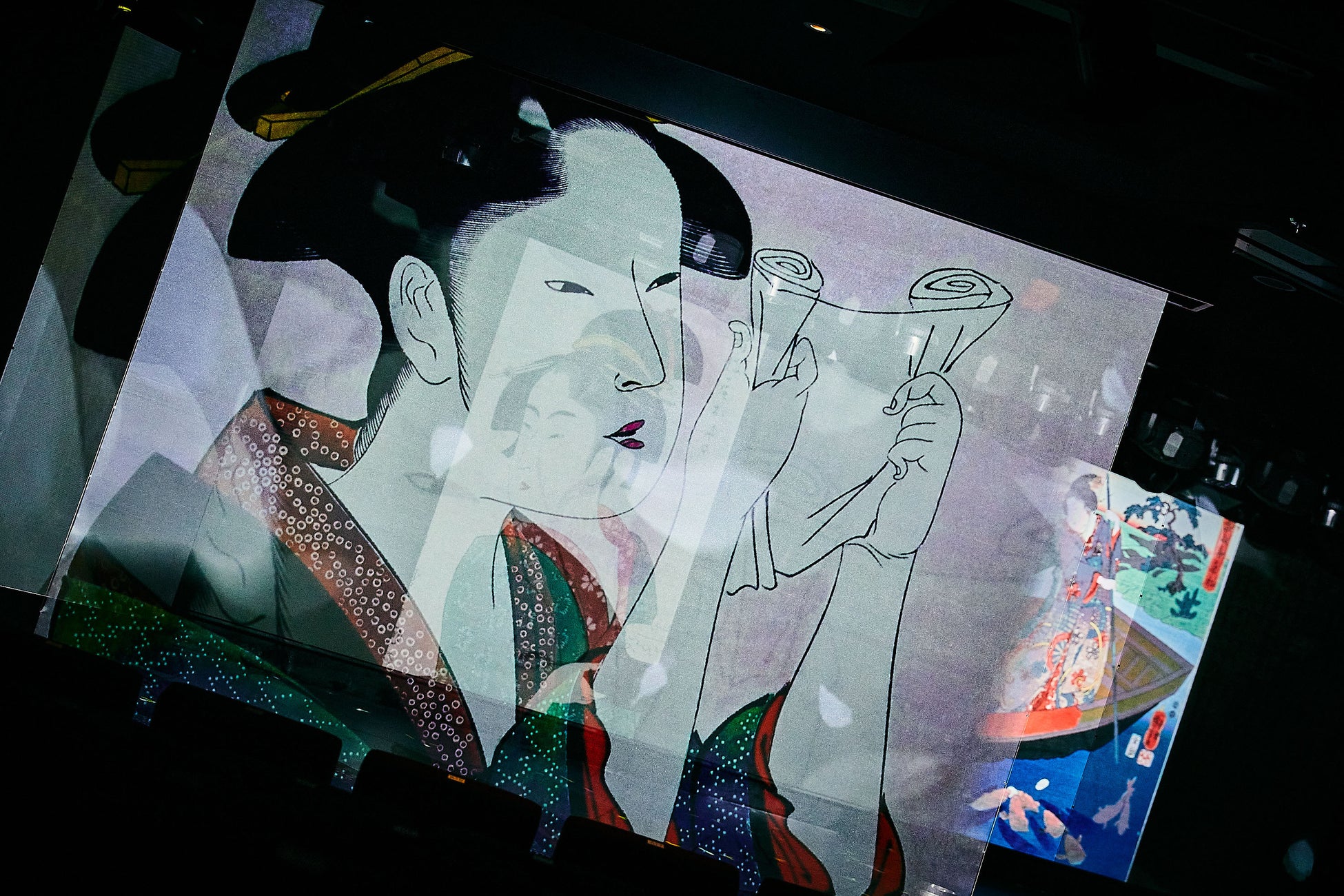 ホログラフィックスクリーンやLEDスクリーンの立体的なデジタルアート映像で物語を紡ぐ新感覚のイマーシブ(没入型)アーツ。浮世絵や日本舞踊、三味線など日本文化が彩る空間に没入するオリジナル映像作品。