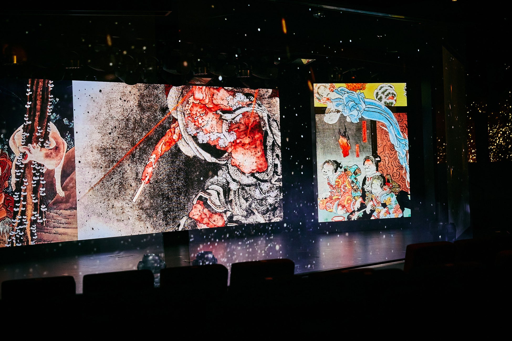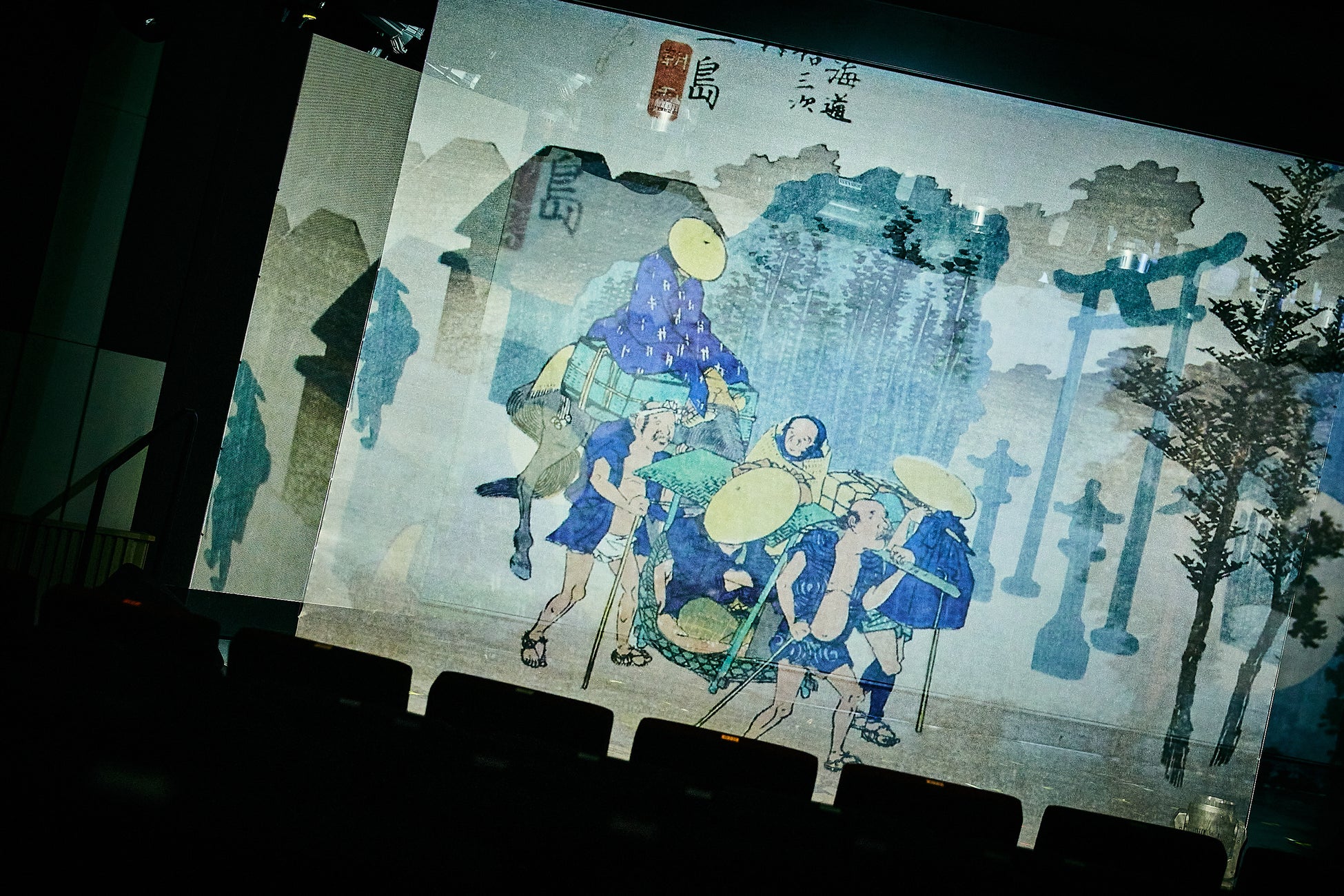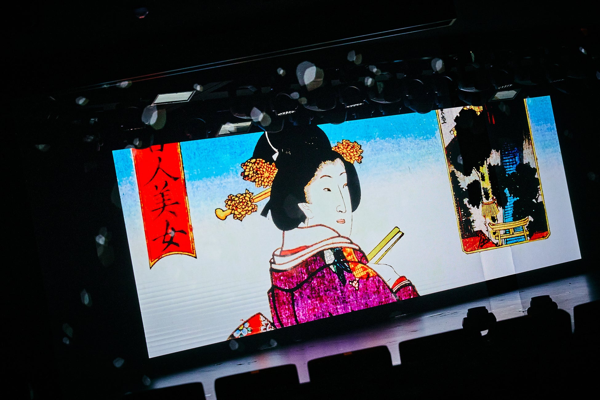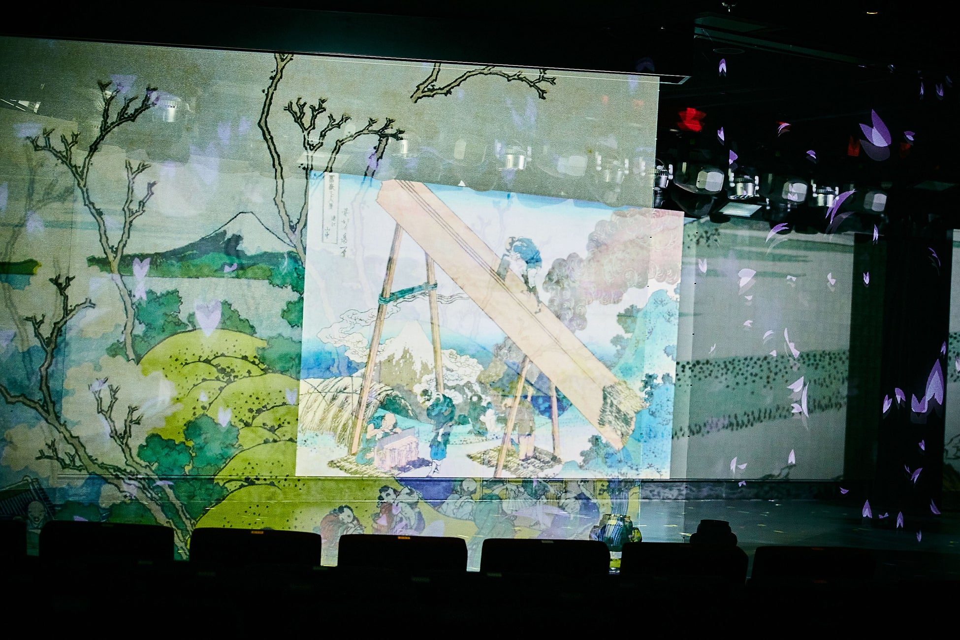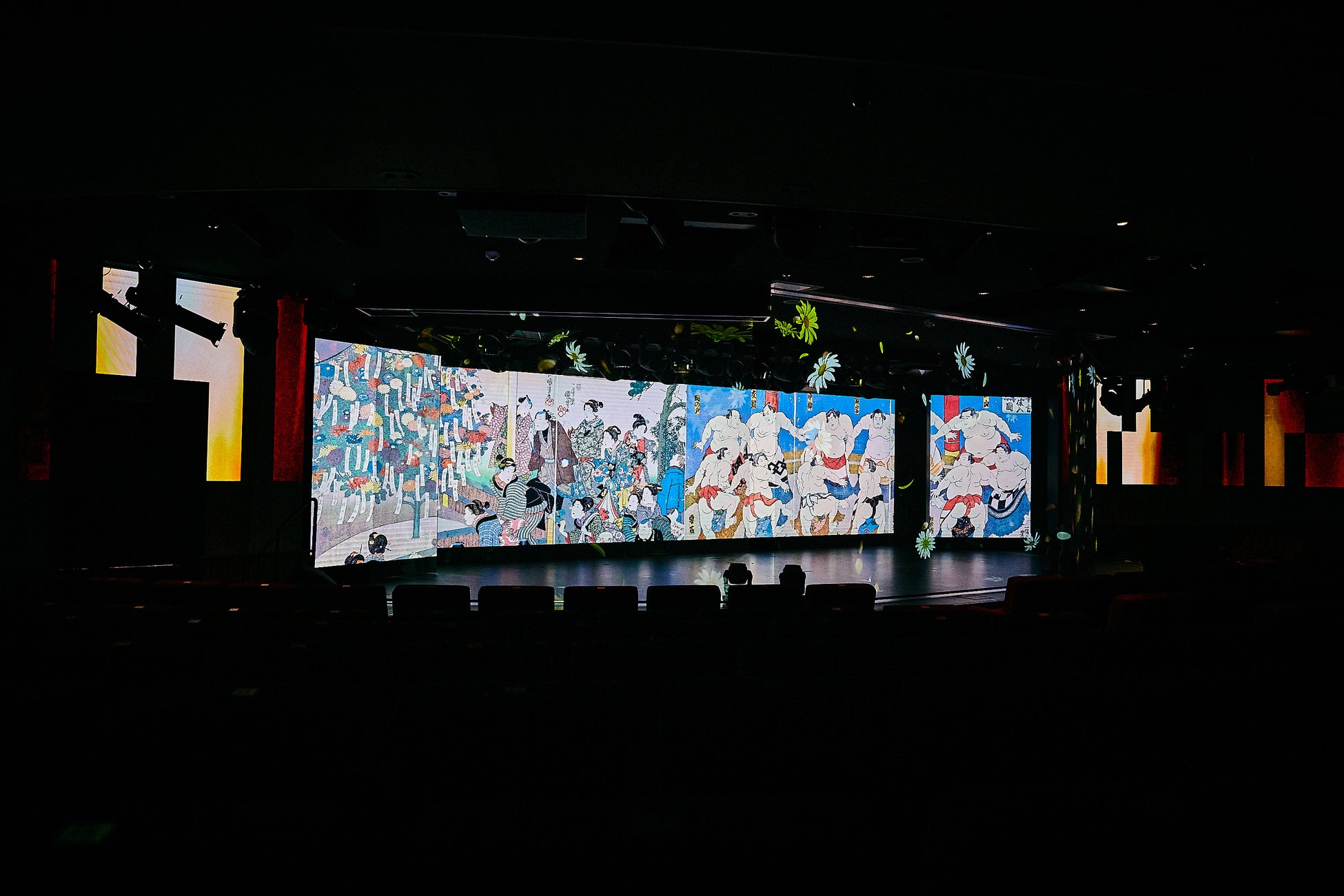 ホログラフィックスクリーンやLEDスクリーンの立体的なデジタルアート映像で物語を紡ぐ新感覚のイマーシブ(没入型)アーツ。浮世絵や日本舞踊、三味線など日本文化が彩る空間に没入するオリジナル映像作品。