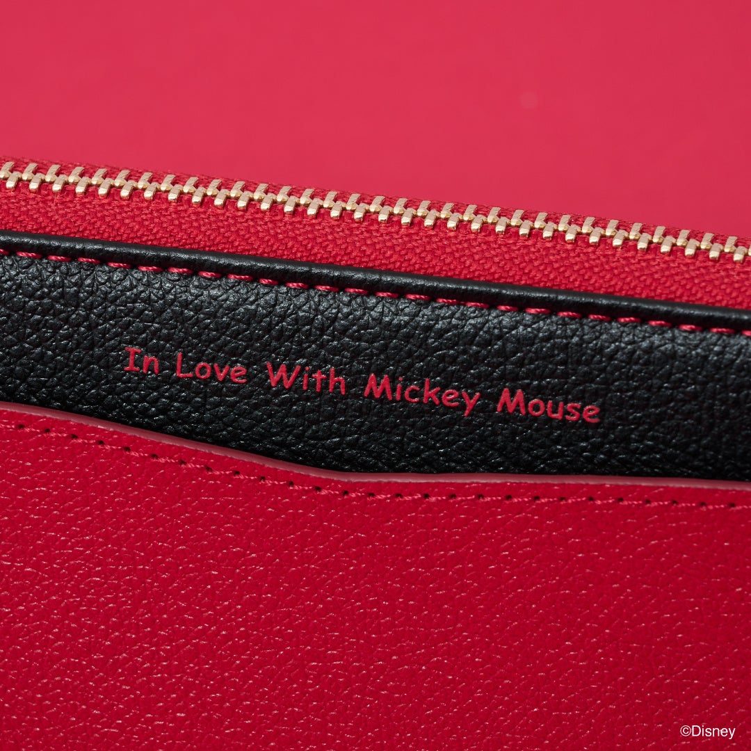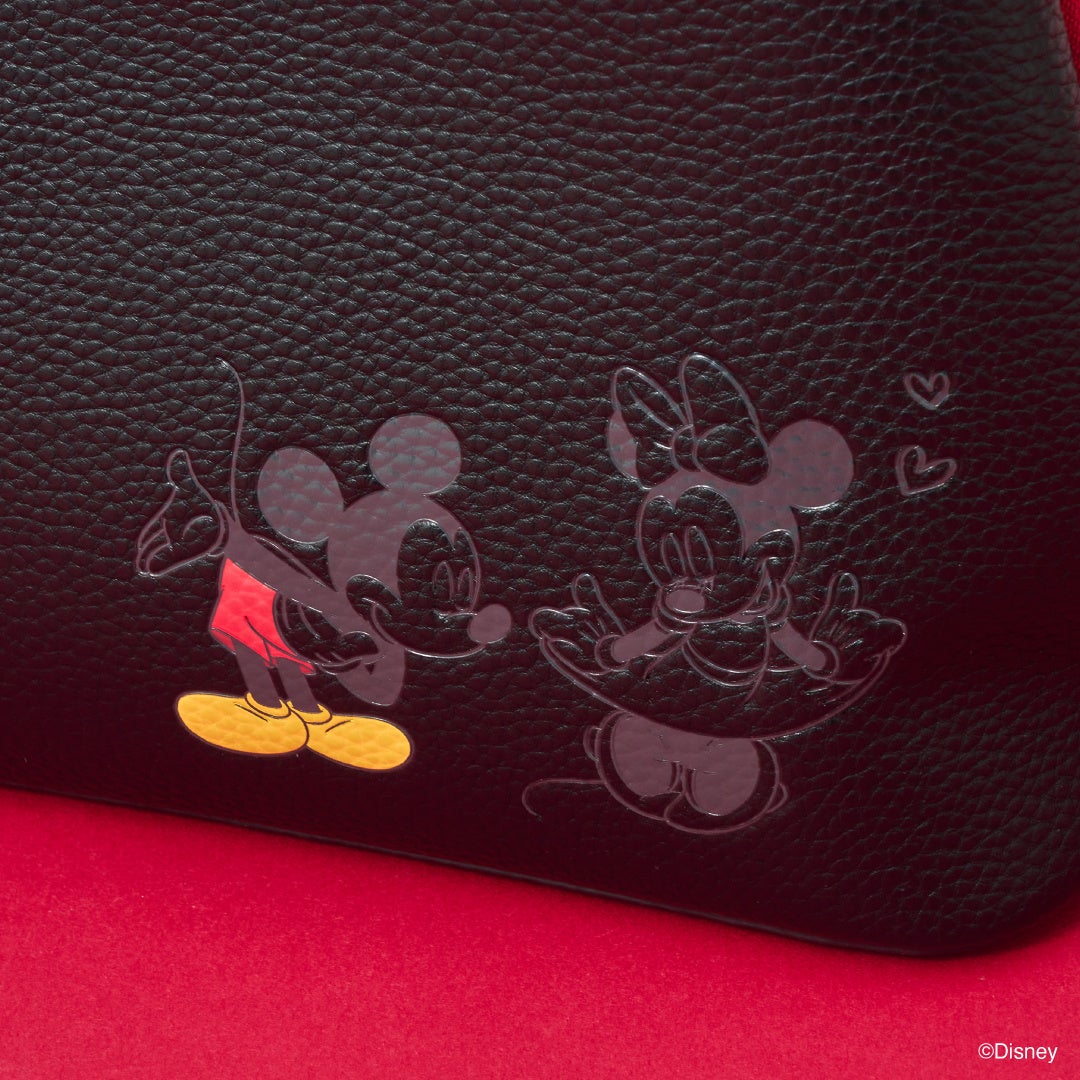 背面には、「ミッキーマウス」と「ミニーマウス」が仲良く寄り添っているアートを型押しでさりげなく表現、裏地にはオリジナルの総柄デザインを施しています。