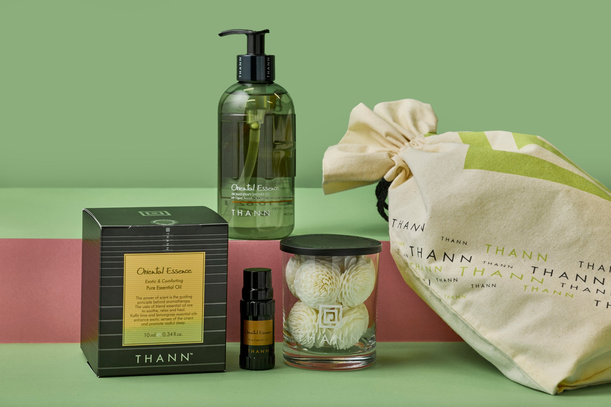 レモングラスの香りのセット。THANNオリジナルポプリにオイルを数滴たらせば香りがやさしく広がり、ルームフレグランスとして楽しめます。シャワージェルは豊かな泡立ちと優しい洗い心地。オリジナル巾着とのセットなので、ギフトにもぴったり。プレゼントは麻布台ヒルズ限定のサービスです。※なくなり次第終了