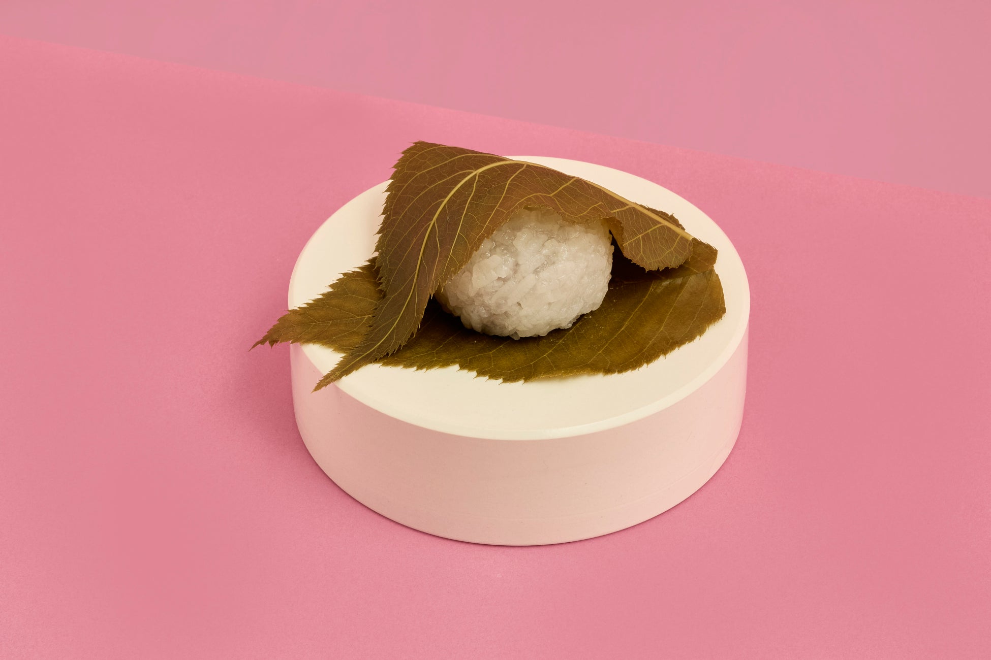 佐賀県産のヒヨクモチをふっくらと蒸し上げ、なめらかで甘さ控えめのこし餡を包み、塩漬けの桜の葉ではさみました。やさしい甘みと桜の香りが調和し、春らしい味わいとともに、ほのかな塩気がアクセントになっています。春の訪れを感じる一品です。