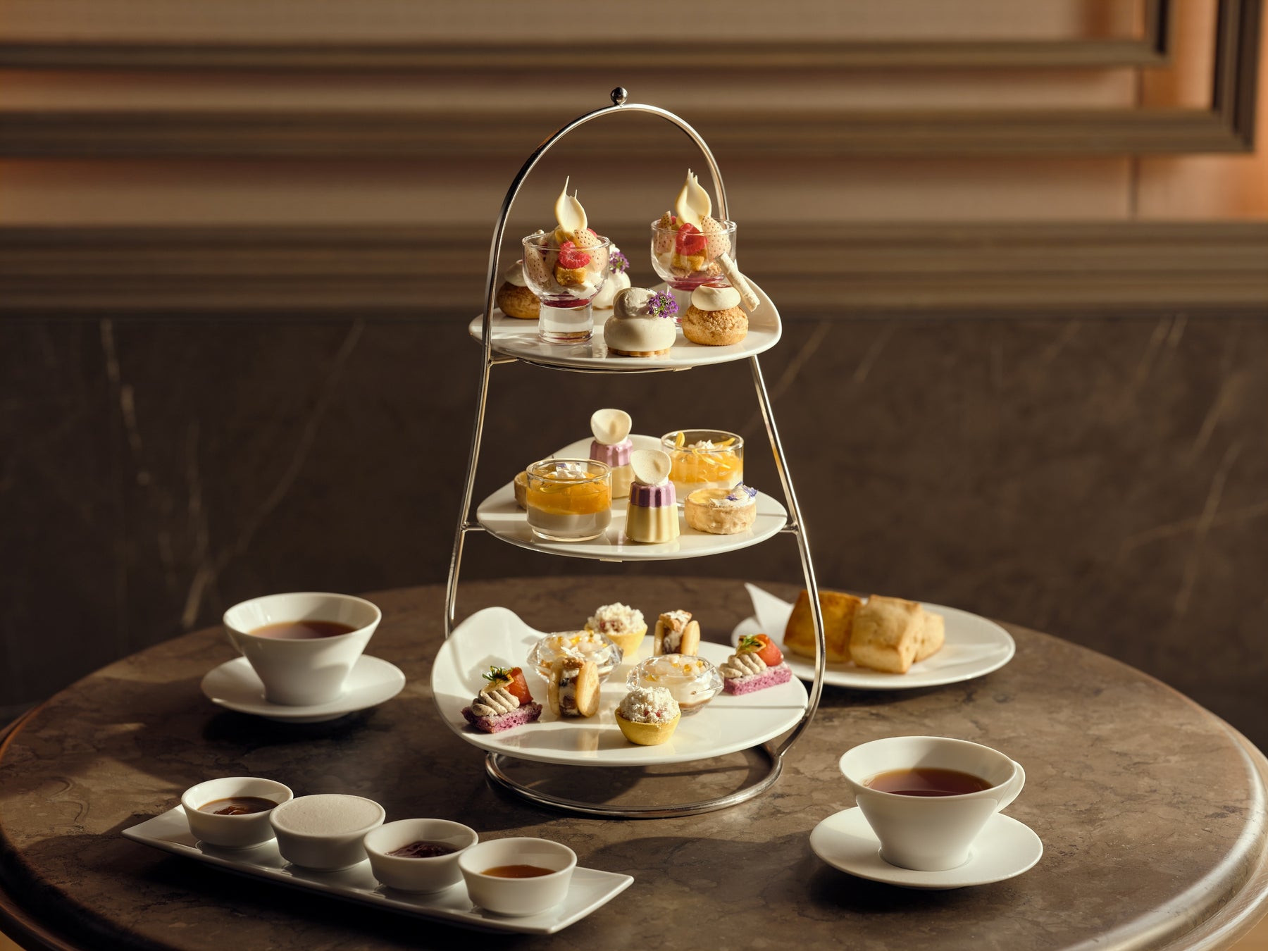 旬の苺をふんだんに使った「白苺のトライフル」をはじめ、ホワイトチョコレートを使ったスイーツや繊細な味わいのセイボリー、種類豊富なティー&コーヒーをご用意しています。春の訪れを待つひとときに、優雅なアフタヌーンティーをお楽しみください。