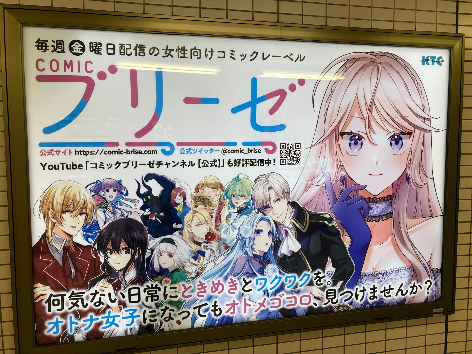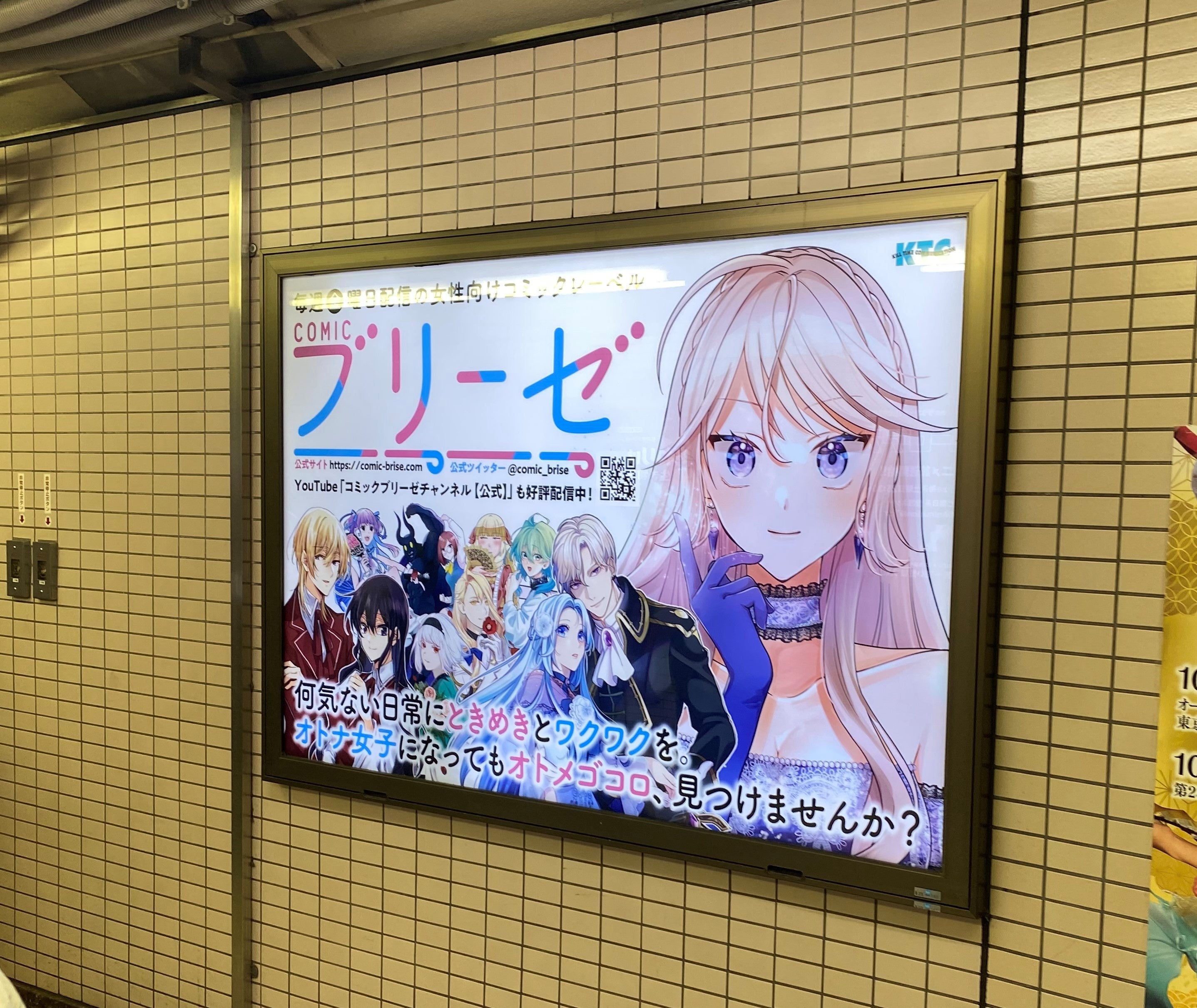 キルタイムコミュニケーション(東京都中央区)は、東京メトロ丸ノ内線池袋駅コンコースに、オトナ女子向けWEBコミックレーベル「コミックブリーゼ」の電照看板を設置いたしました。