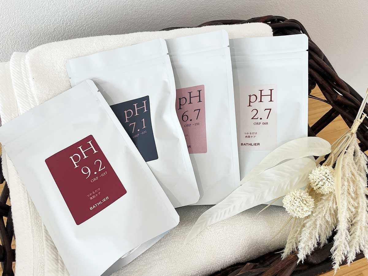 美肌は一日にしてならず!ということで、pHコントロール入浴剤も、定期的に浸かって頂くことでより効果がUPします。推奨頻度は一週間に2~3回。美肌ケア・肌バリア・保湿ケア・角質ケア、の4種の中から、お肌のお悩みに合わせてお選びください。