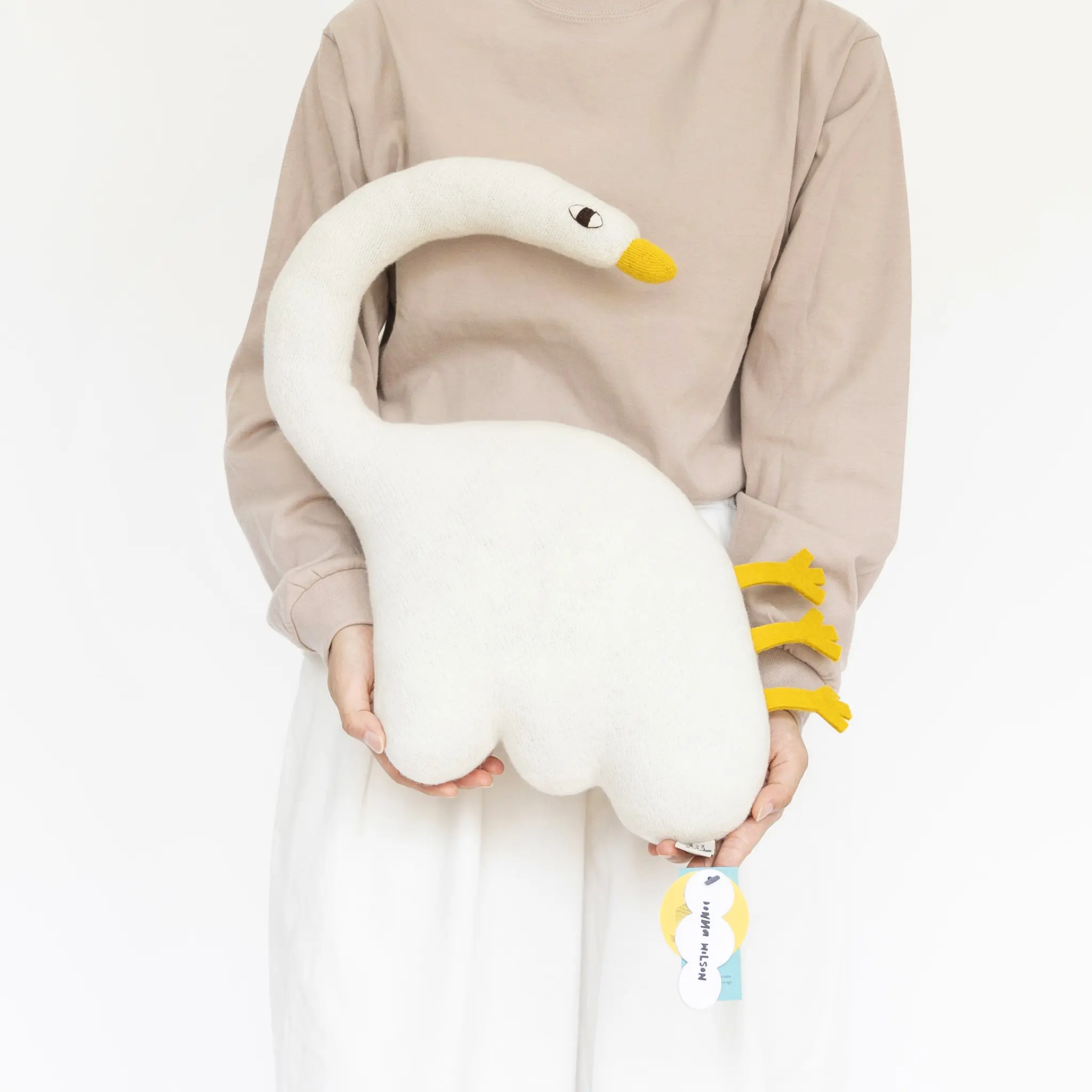 スコットランドの北東にある小さな田舎に生まれ、自然と風景、そして温かい家族の中で育ったドナ。世界最高峰の芸術大学と言われるイギリスのRCA=ロイヤル・カレッジ・オブ・アートで学んでいた2002年に初めてニットの縫いぐるみを生み出して以来、奇妙なフィギュア、楽しいアパレル、独創的な家具など、創作活動の幅を広げ、世界に発信している。現在、ロンドンを拠点として活動している。