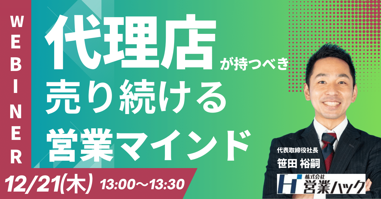 代理店担当者必見!代理店営業が売上をあげるために必要なポイントを解説します!《12/21(木)13:00~無料オンラインセミナー》