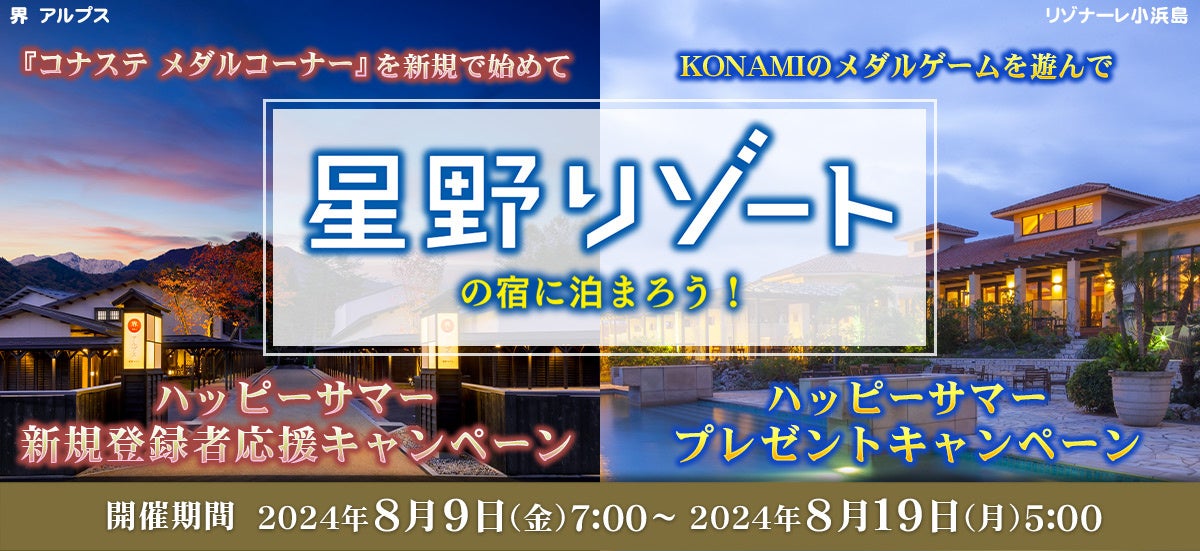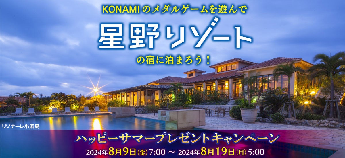 KONAMIのメダルゲームで「星野リゾート宿泊ギフト券」などが当たる「ハッピーサマーキャンペーン」を開催!