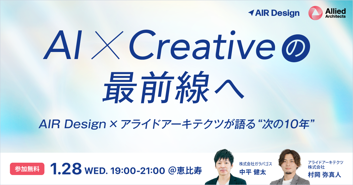 「AI × Creative の最前線へ — AIR Design × アライドアーキテクツが語る“次の10年”」は、AI活用の最前線を知りたいマーケター、事業推進に携わる方、組織変革に関心のある方に向けた、学びと気づきを提供する特別イベントです。