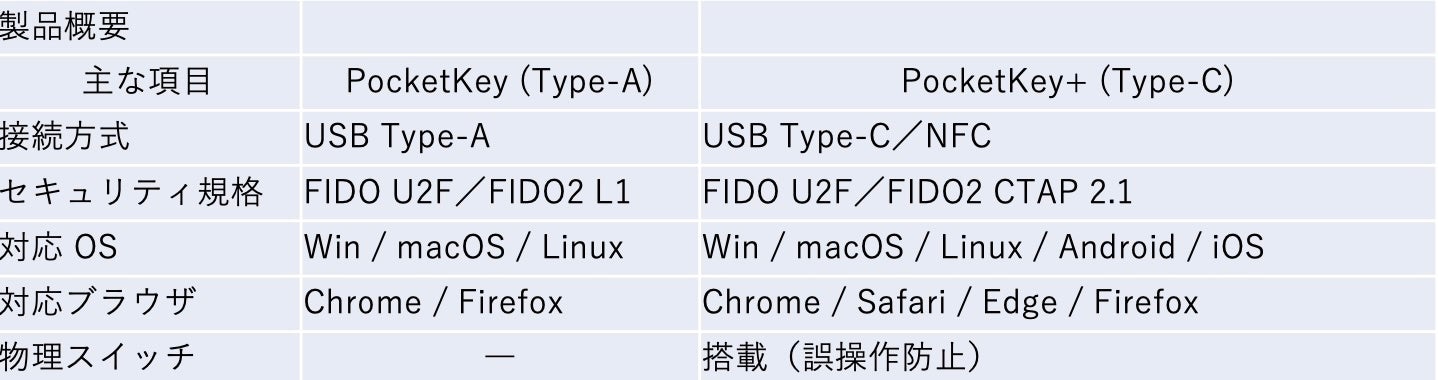 パスワードレス化は ‘いつかやる’ から ‘今すぐ取り組む’ へと変わりました。PocketKey+ は USB-C と NFC を備え、在宅勤務からモバイルワークまでシームレスな認証体験を提供します。当社はカードリーダーやIC カード事業で培った知見を生かし、国内のお客さまのゼロトラスト推進を全面的に支援します。