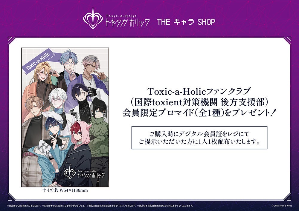 ・Toxic-a-Holicファンクラブ(国際toxient対策機関 後方支援部)会員限定ブロマイド(全1種)をプレゼント!