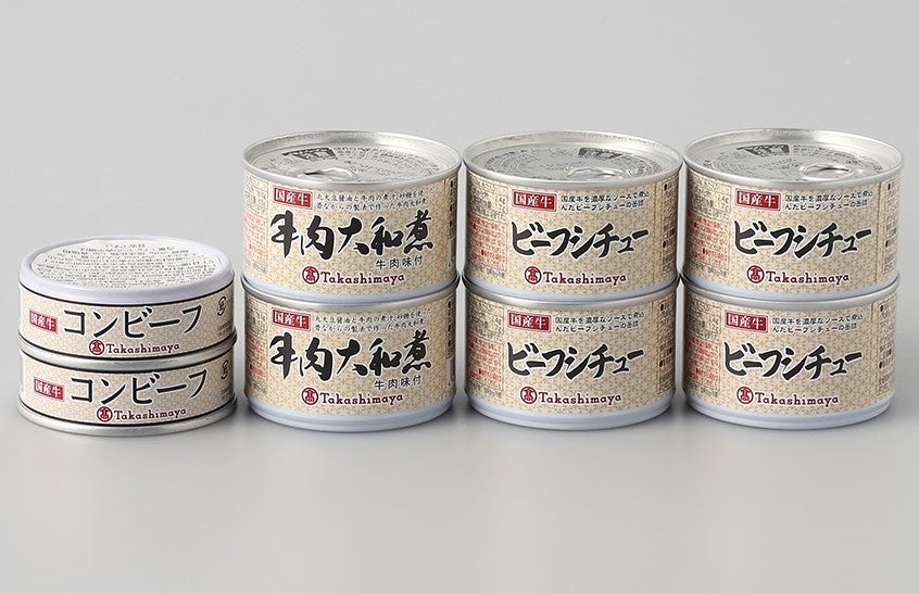 国産牛を使用した「ビーフシチュー・コンビーフ・大和煮」の3種類を詰め合わせました。