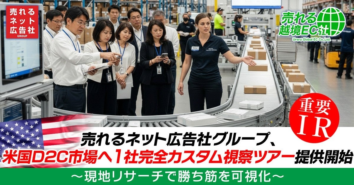 売れるネット広告社グループ株式会社(本社:福岡県福岡市、代表取締役社長 CEO:加藤公一レオ、東証グロース市場:証券コード9235、以下 売れるネット広告社グループ)の連結子会社である株式会社売れる越境EC社は、米国市場への進出を本気で目指す日本企業に向けて、“現地リアルを最短距離で掴み取る”新サービス『業種別 × 1社単独カスタム視察ツアー』の提供を開始いたしました。