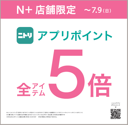 N+ 全店で実施 ニトリアプリ会員キャンペーン(期間:7⽉9⽇(⽇)まで)
