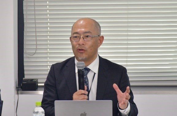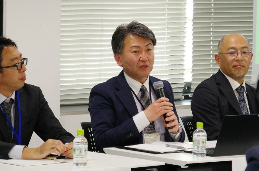 5社による成果報告会に続き、産業人材の育成や火山防災産業の活性化方策について、国立研究開発法人防災科学技術研究所(茨城県つくば市)三輪学央氏、能美防災株式会社 佐々木聰文氏、山梨県富士山科学研究所 吉本充宏研究部長ら火山防災に携わる方々が登壇し、有限責任監査法人トーマツ(東京都千代田区)中尾健太氏の進行により、議論を交わしました。