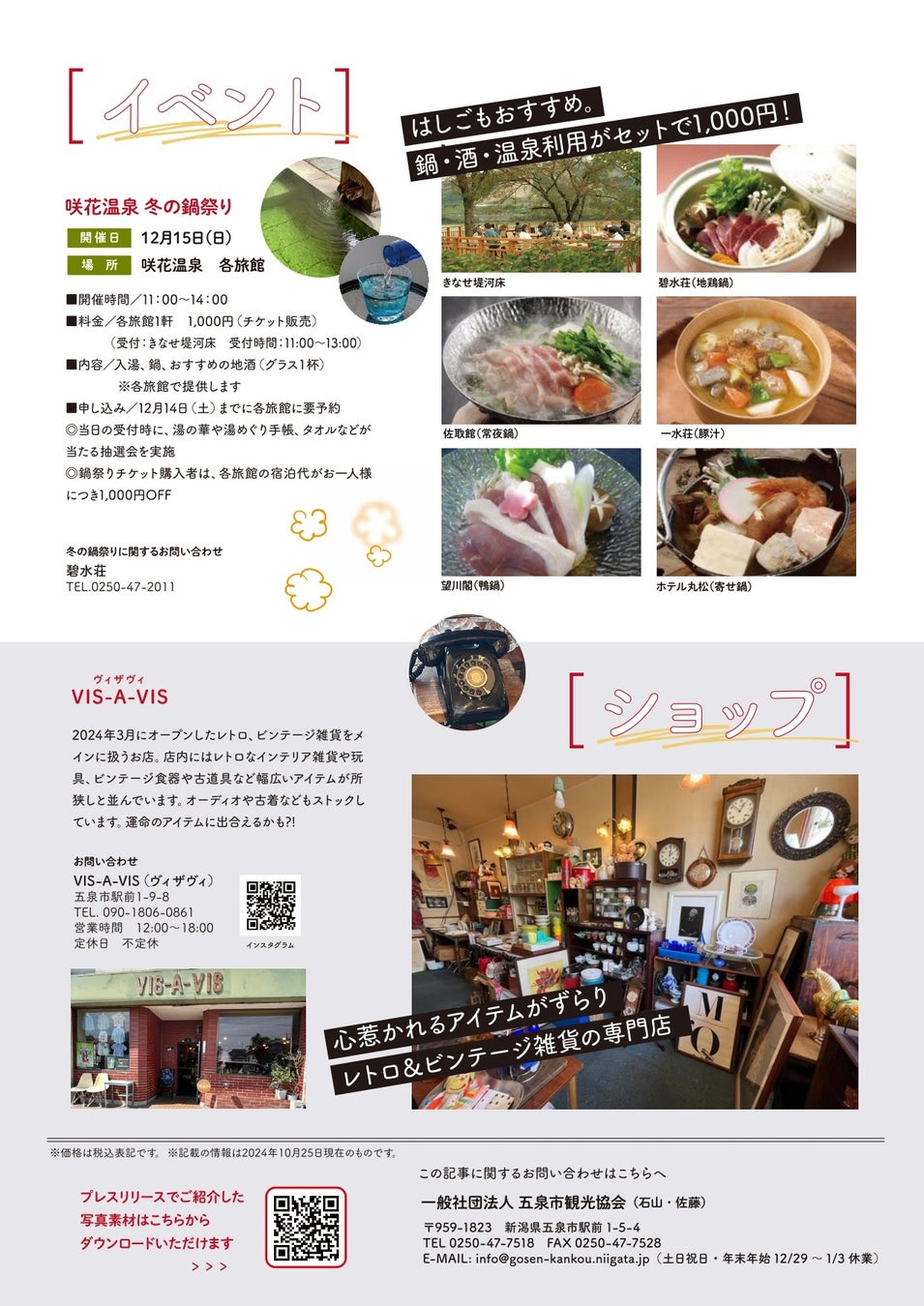 2025年は巳年!五泉市内の巳にまつわる開運スポットや「咲花温泉 冬の鍋祭り」など、冬の五泉も魅力満載! プレスリリース「GO!GO!ごせんNEWS」12月・1月号を発行しました