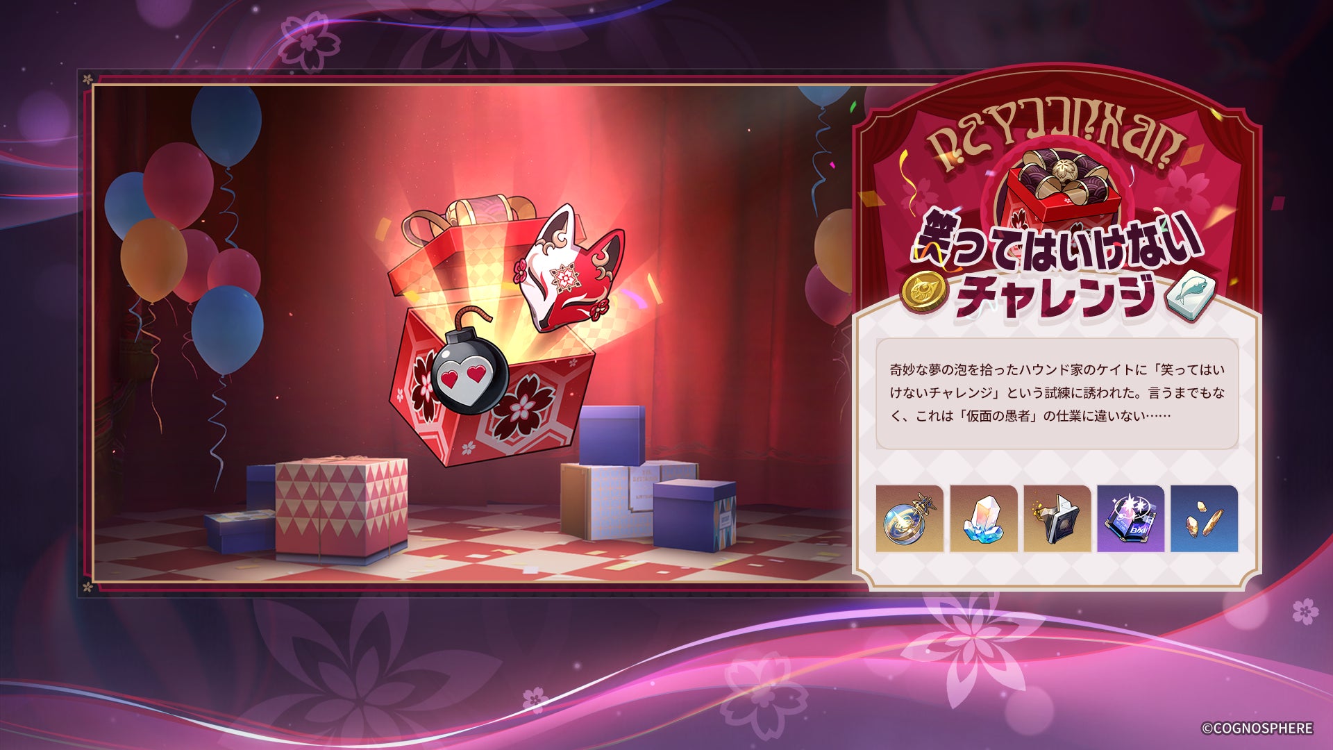 奇妙な夢の泡を拾ったハウンド家のケイトに「笑ってはいけないチャレンジ」という試練に誘われました。言うまでもなく、これは「仮面の愚者」の仕業に違いありません……。