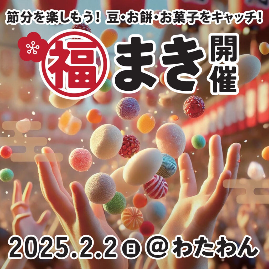 株式会社antiqua(本社:大阪府和泉市)が手がけるエンターテインメントモールWHATAWON(ワタワン)で、節分ならではの楽しさを満喫できるイベント『福まき&恵方巻ワークショップ』を開催いたします!豆まき大会や恵方巻作りの体験を通じて、日本の伝統行事を親子で楽しむ特別な1日をお届け。家族みんなで笑顔になれる節分イベントを、ぜひお見逃しなく!