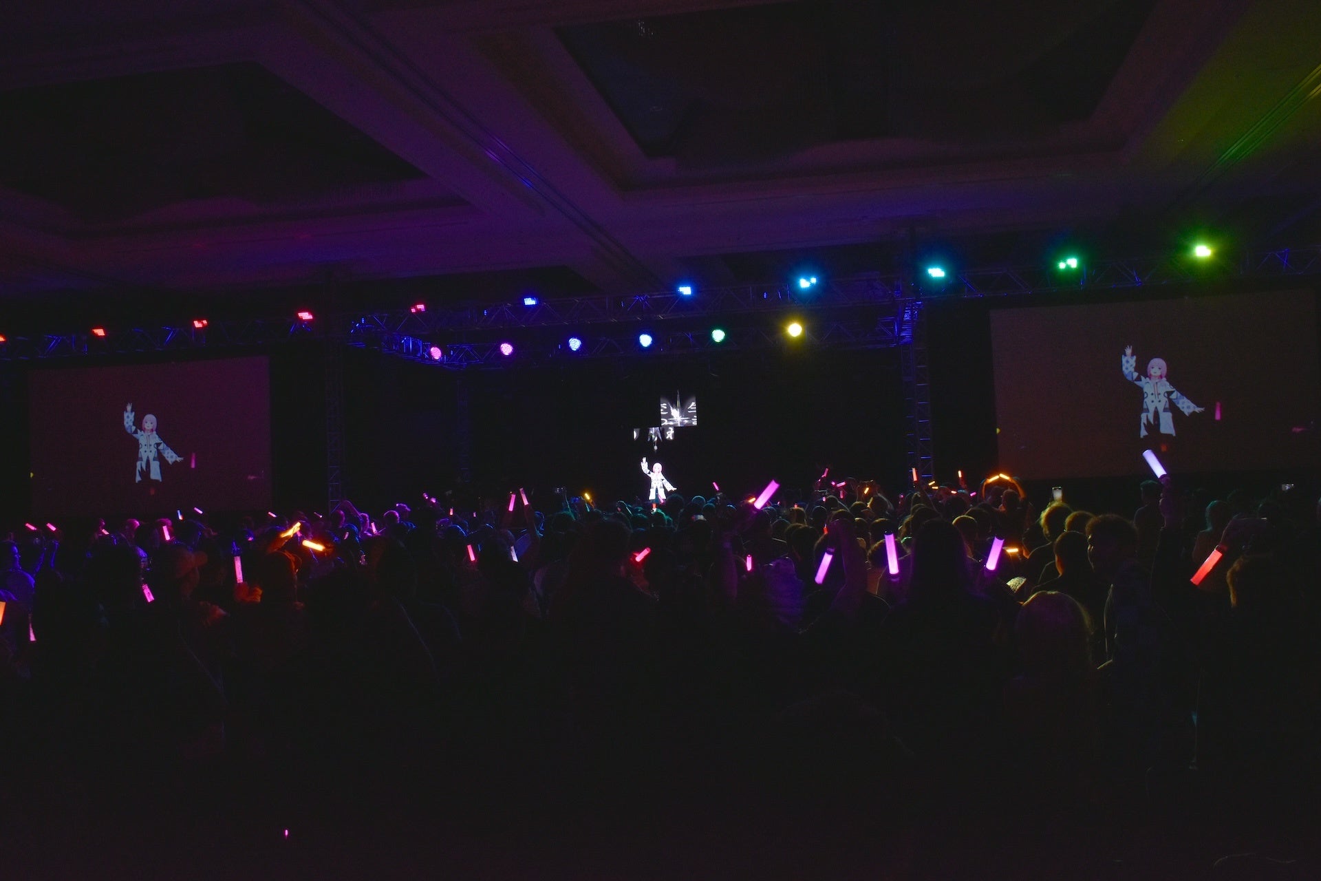 イベントの開幕直後から会場がアニメファンやジャパンカルチャーファンの熱気で満ちていく中、いよいよ会期2日目のステージに花譜が登場。