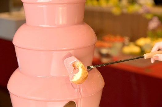 ルビーチョコレートファウンテン、パン数種、サラダバー、ショートパスタ、