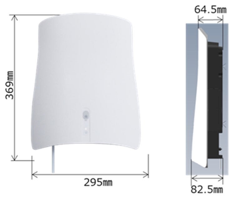 消費電力(MAX モード/ 標準モード):23 / 12 W(50/60Hz)外形寸法:W295 ×D369×H83mm