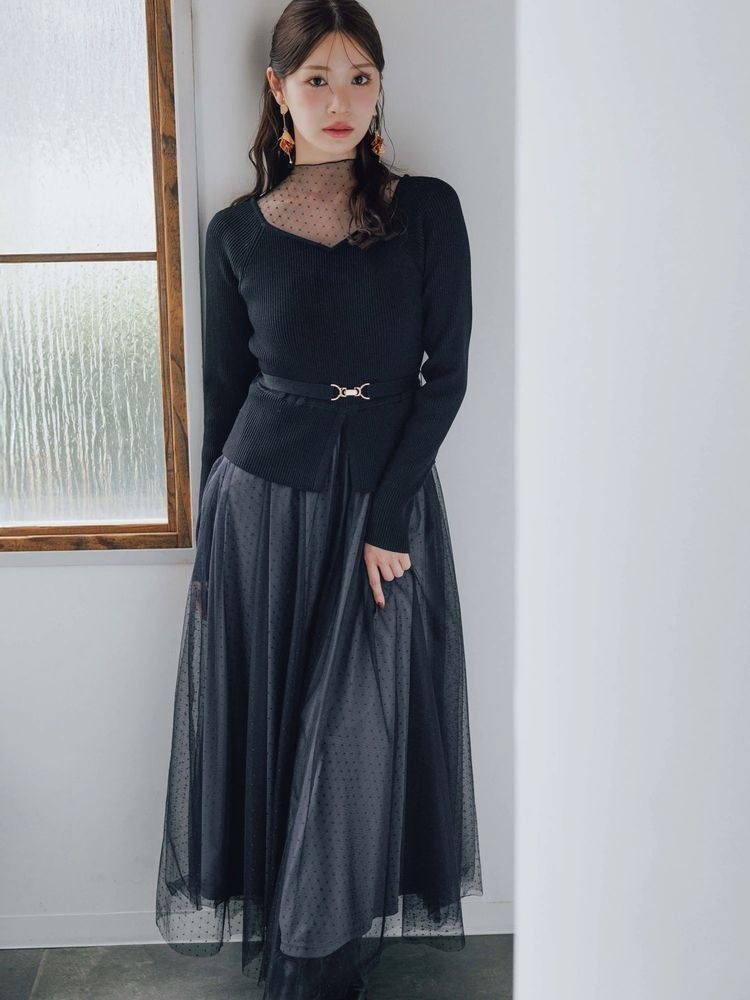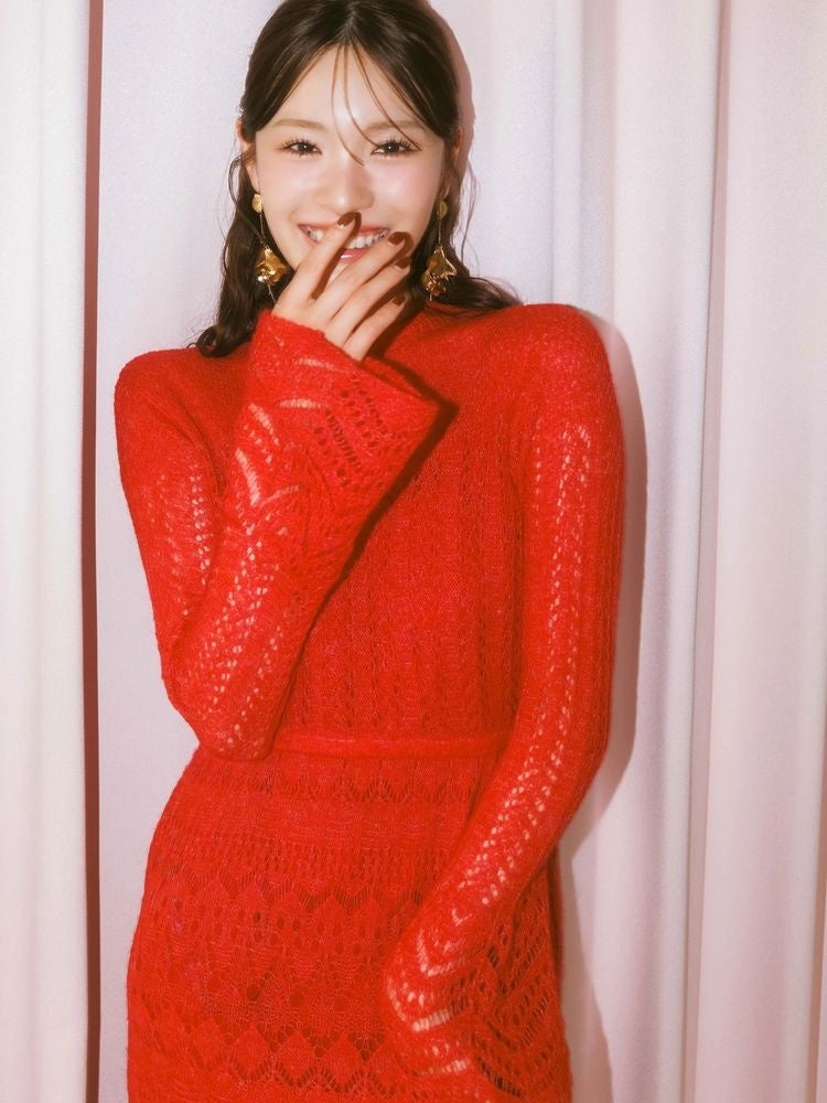大胆な赤が目を引くレディな「モヘヤニットスカシアミワンピース」やドレスシーンにもおすすめの「ビットニットドットチュールドッキングワンピース」、寒空の下でも暖かく"美シルエット"を叶える「ウールスタンドカラーコート」など、全5LOOKをご紹介。