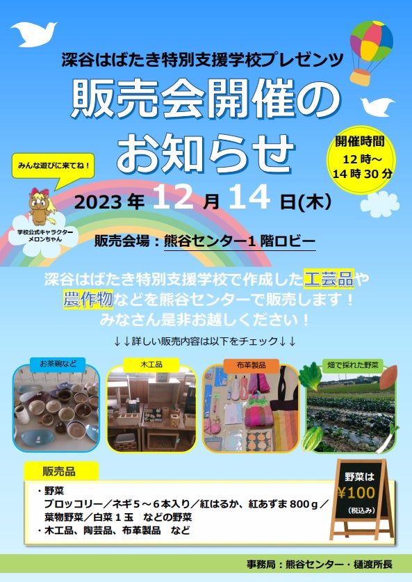 特別支援学校プレゼンツ 物流センター初の販売会 熊谷で12月14日(木)