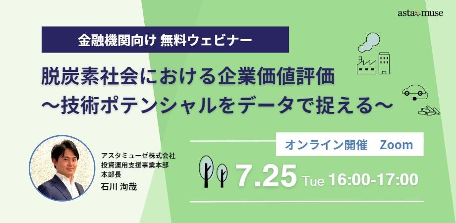 金融機関向け無料セミナー「脱炭素社会における企業価値評価~技術ポテンシャルをデータで捉える~」を開催
