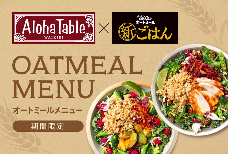 株式会社ゼットン(本社:東京都渋谷区、代表取締役社長:鈴木伸典)が運営するハワイアン・カフェ&レストラン「アロハテーブル」国内14店舗にて、日清シスコ「おいしいオートミール 新ごはん」とのコラボにより誕生したメニュー5品を1月31日(水)より期間限定で提供いたします。