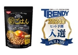 日清シスコ独自のシリアル製造技術を駆使して、粉末状にした“オートミール”をお米のように丸みを帯びた形に加工。これまでのオートミールの米化を超える“圧倒的米化”を実現しました。水と一緒にレンジで加熱するだけで、ごはんのようなもちもちとした食感が楽しめます。1食(30g)あたり119kcal、食物繊維たっぷり、たんぱく質入り。2023年11月、日経トレンディが選ぶ「2024年ヒット予測」入選商品。