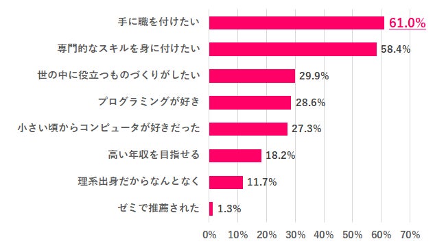 ★ITエンジニアになろうと思った理由は「手に職を付けたい」「専門的なスキルを身に付けたい」が約6割